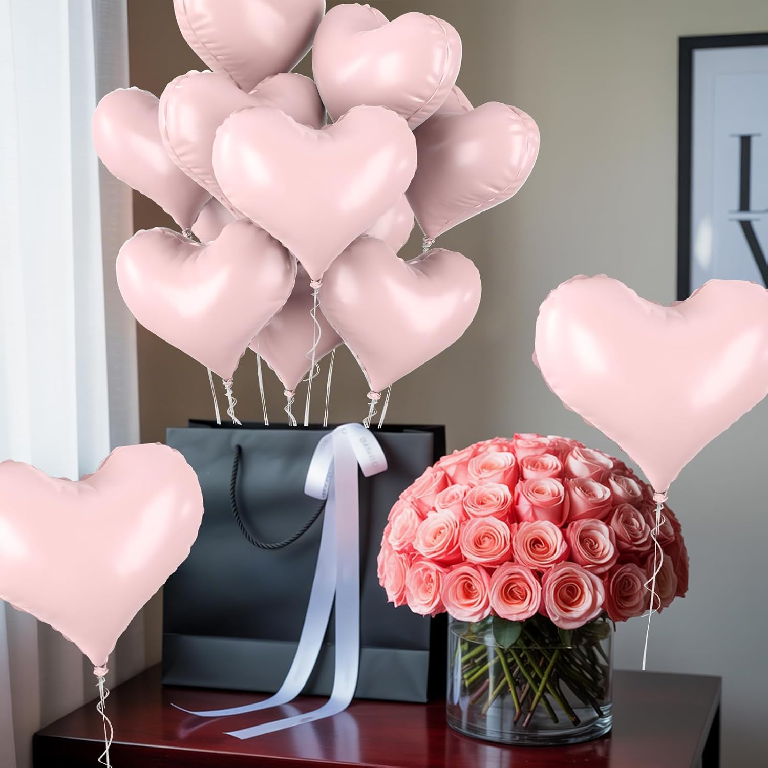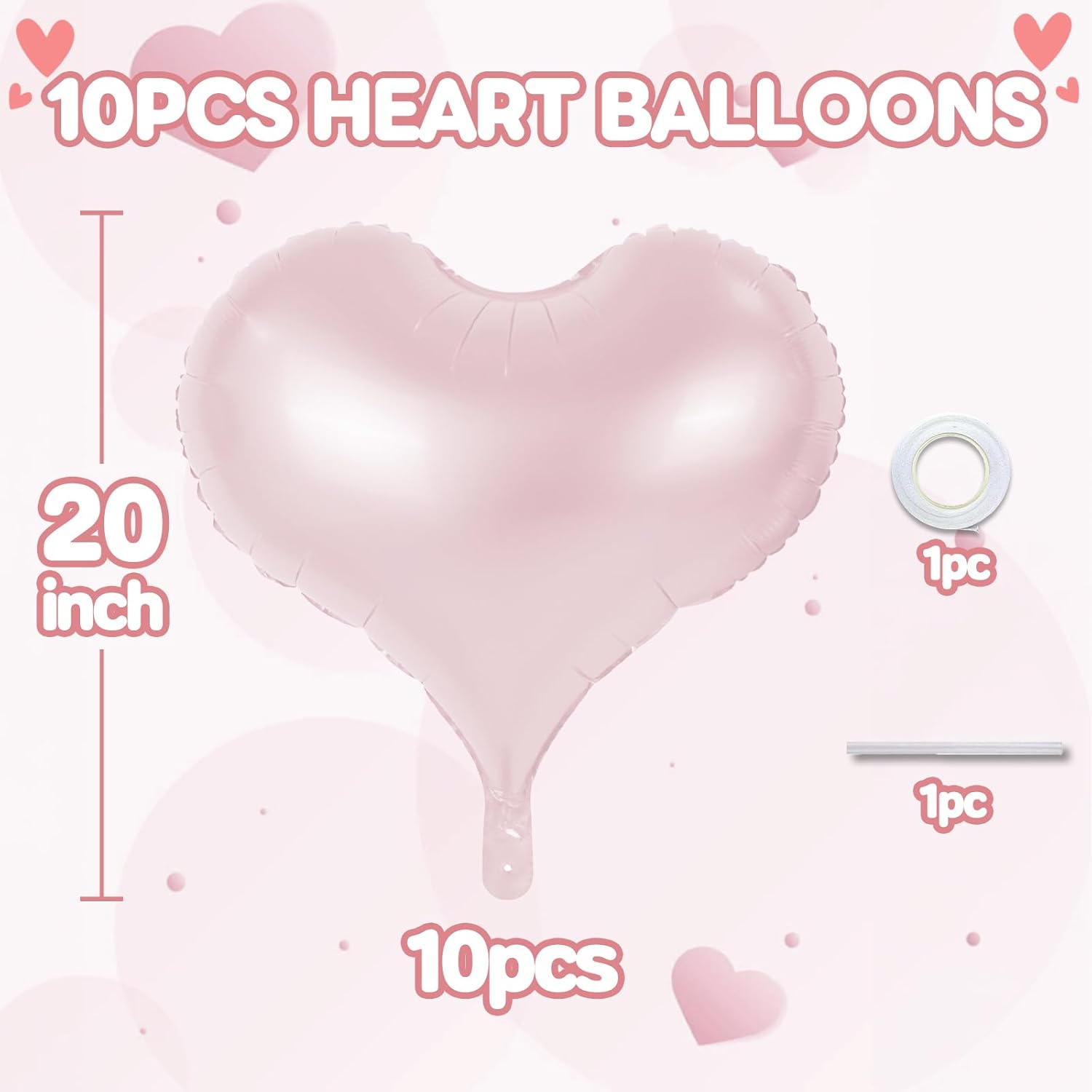 - 20 Inches Heart Balloons - Package contains 10 pcs baby pink heart balloons, 1pc straw and 1pc ribbon.The baby pink heart shaped balloon are ideal for any party. 20 inch is big and special enough to decorate your party and create a sweet and warm atmosphere!