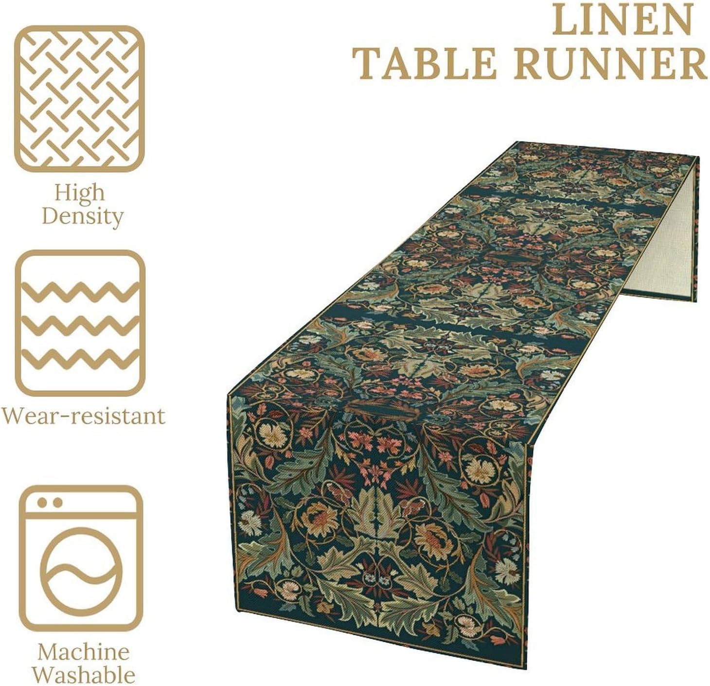 Green Morris Floral Table Runner, Boho Rustic Country Farmhouse Teal Red Rose Pattern for Home Kitchen Table Decor Dining Coffee Room Party Decor 13x120in