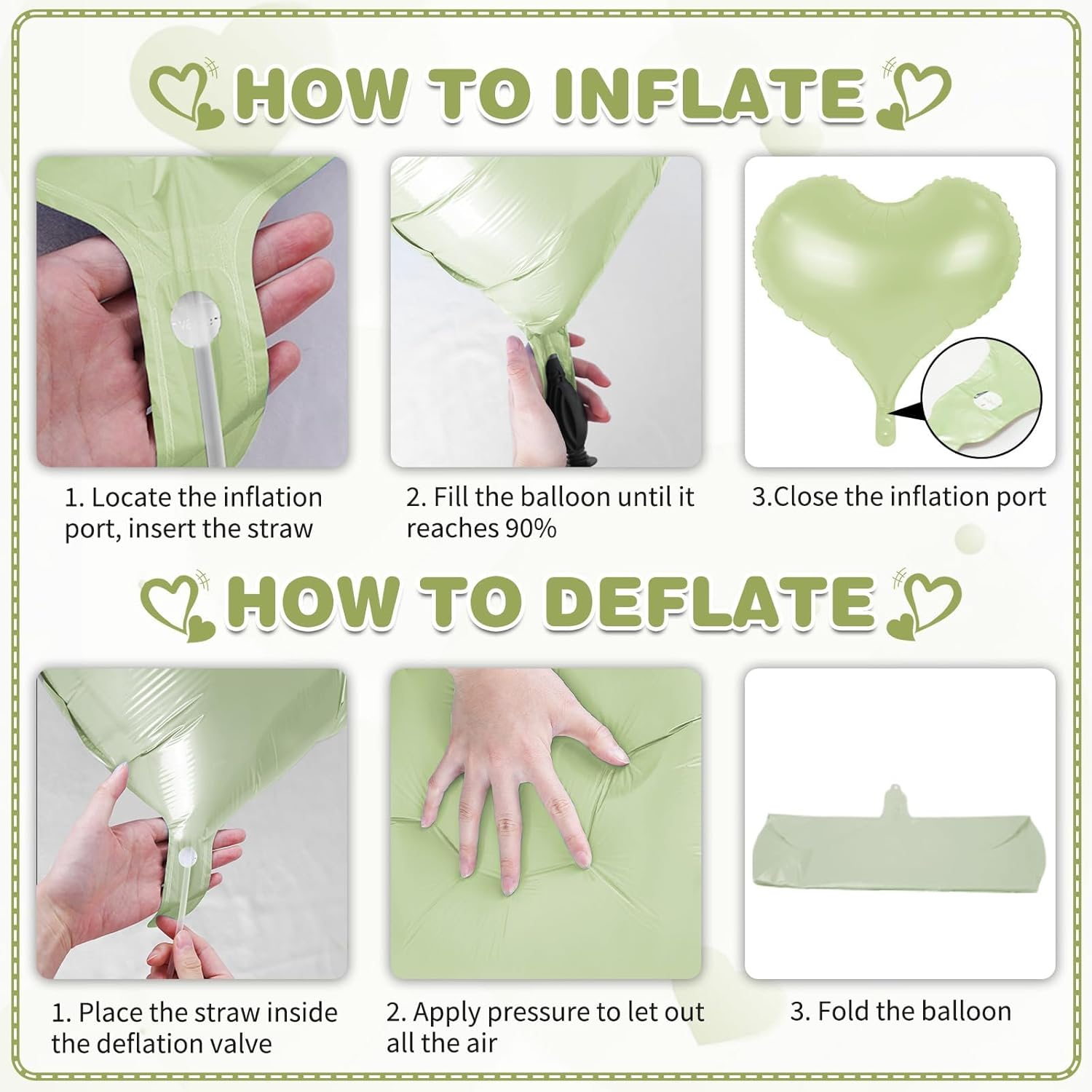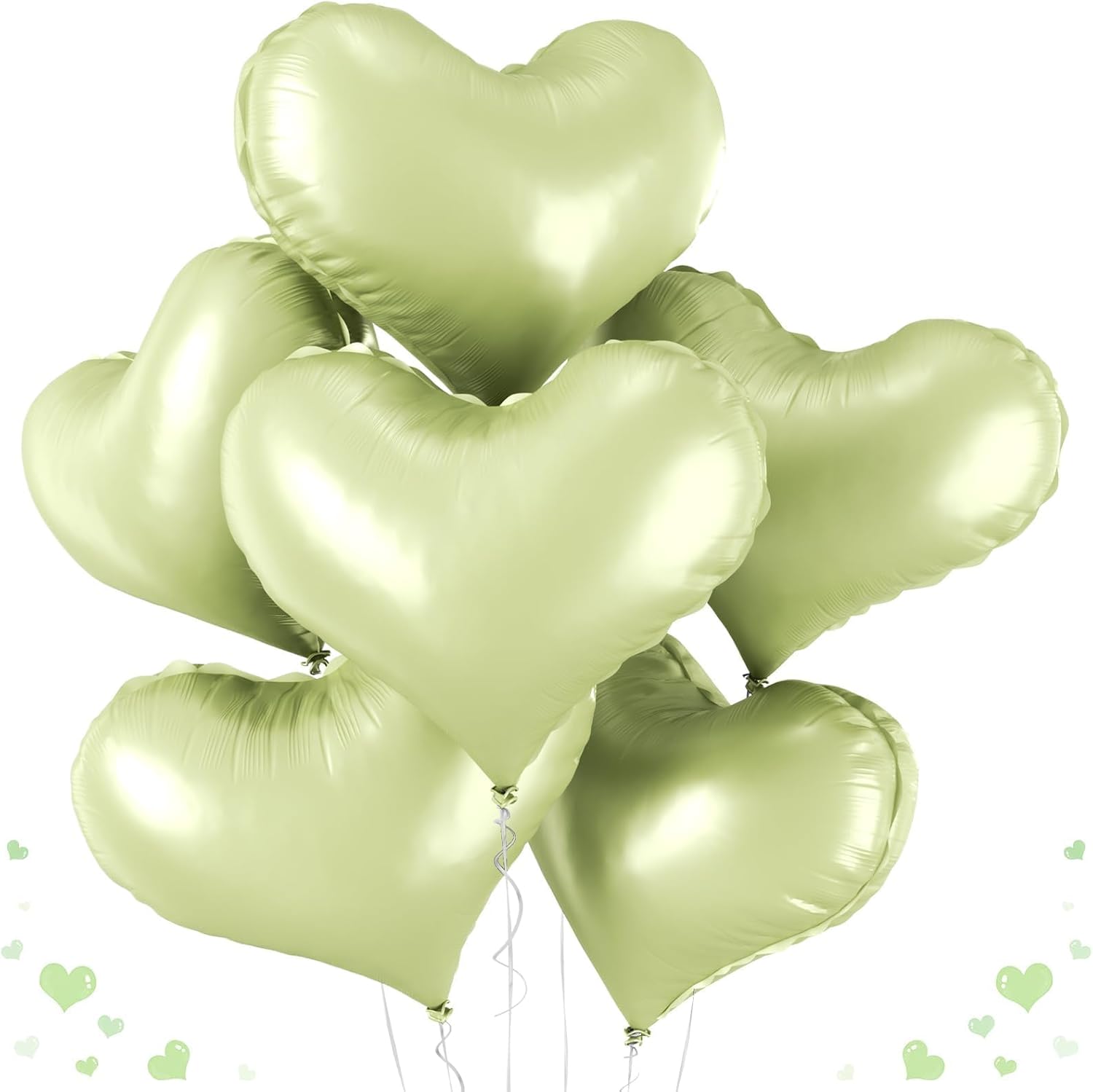 - 24 Inches Heart Balloons - Package contains 6 pcs green heart balloons, 1pc straw and 1pc ribbon.The light green heart shaped balloons are ideal for any party. 24 inch is big and special enough to decorate your party.