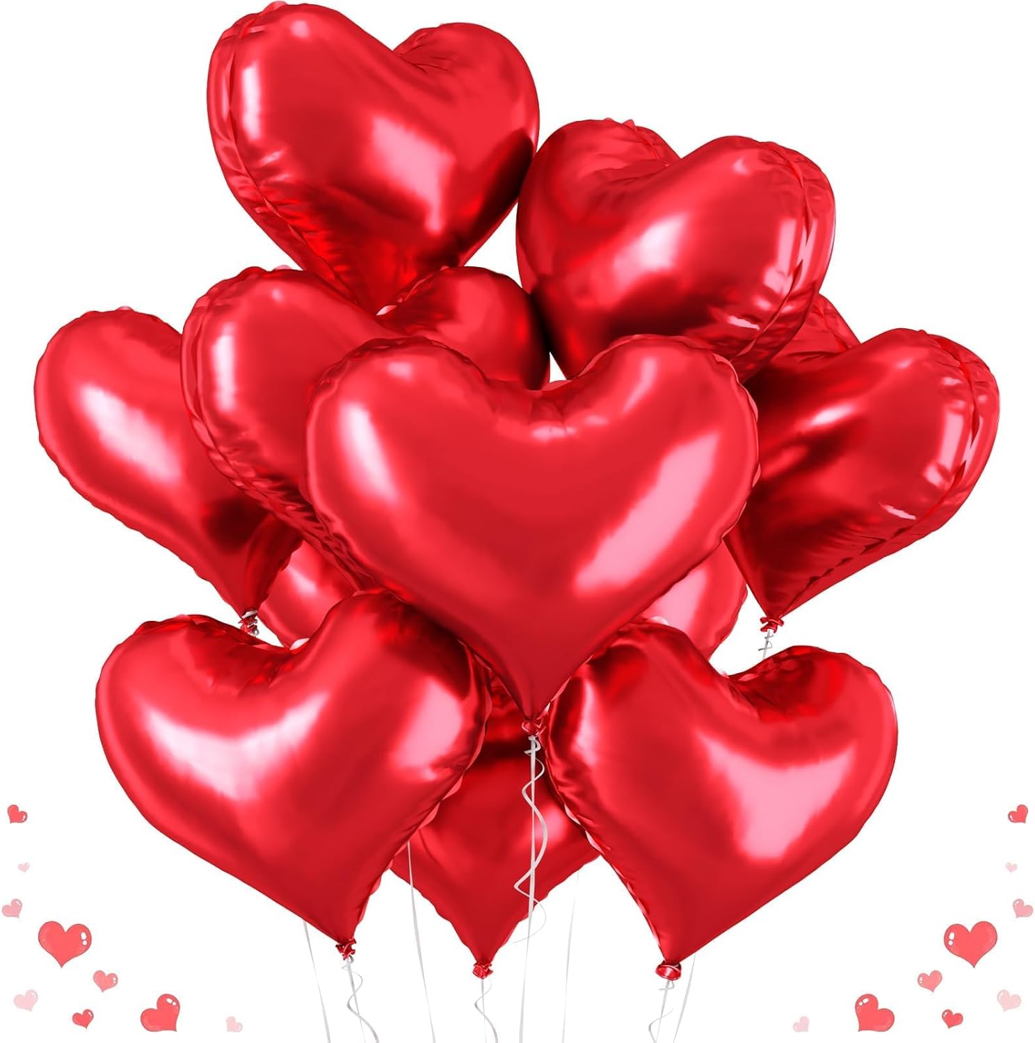 20 Inch Red Heart Balloons, 10 Pcs Heart Shaped Valentine Foil Balloons, Red Love Helium Balloon for Valentine Bridal Shower Anniversary Wedding Birthday Bachelorette Party Decorations