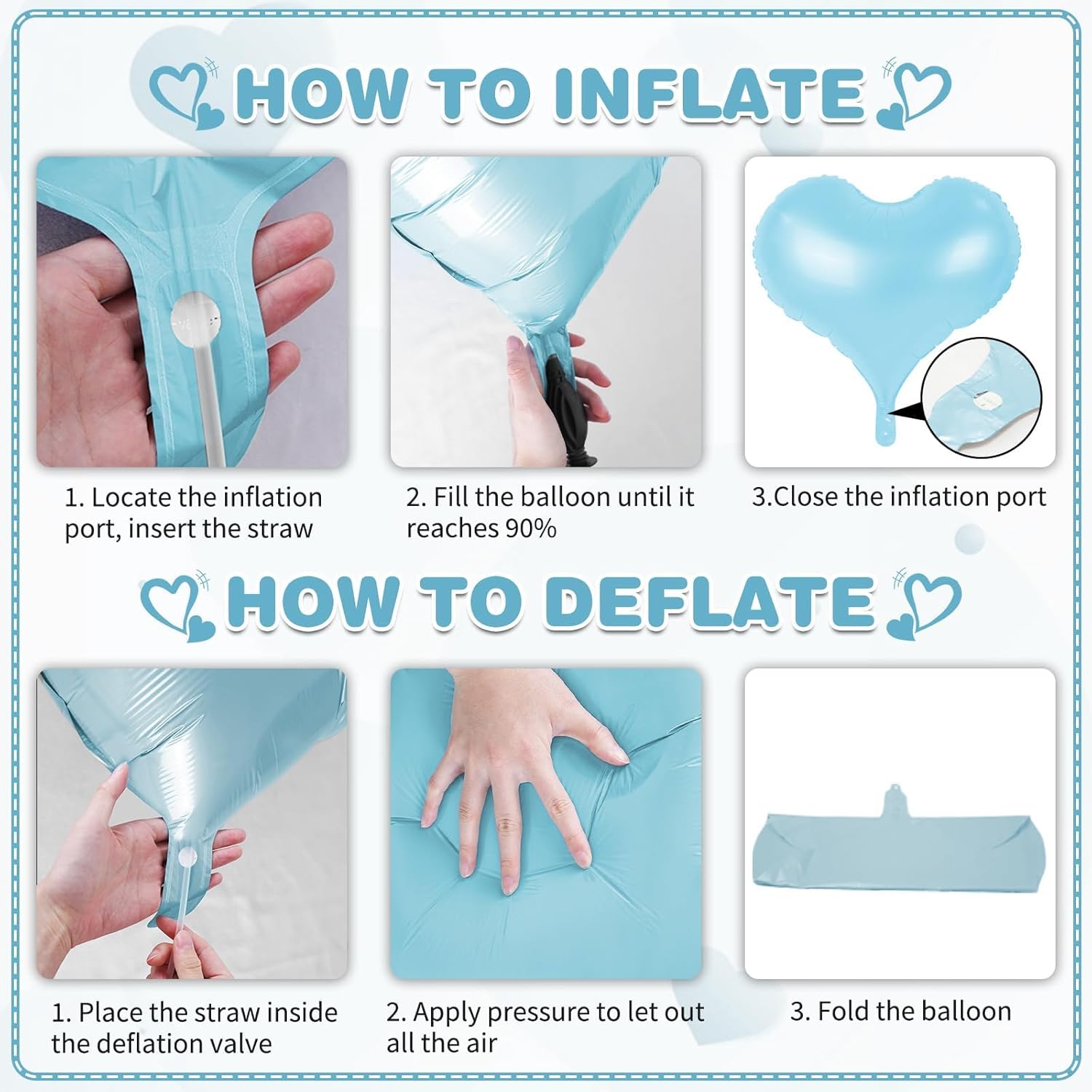 - 24 Inches Heart Balloons - Package contains 6 pcs light blue heart balloons, 1pc straw and 1pc ribbon.The blue heart shaped balloons are ideal for any party. 24 inch is big and special enough to decorate your party.