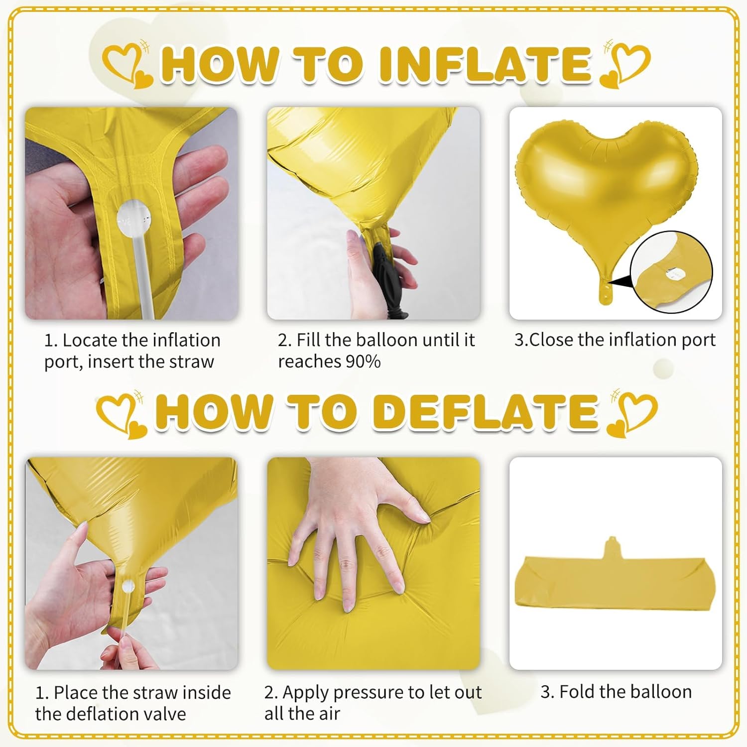 - Easy to Use - Effortlessly inflate our heart shaped foil balloons using the included straw. (If you want a floating effect, you can use helium)Simply pinch the self-sealing valve when full. It can be easily hung on the wall, ceiling or balloon garland, and it looks more advanced as a photo-taking tool!