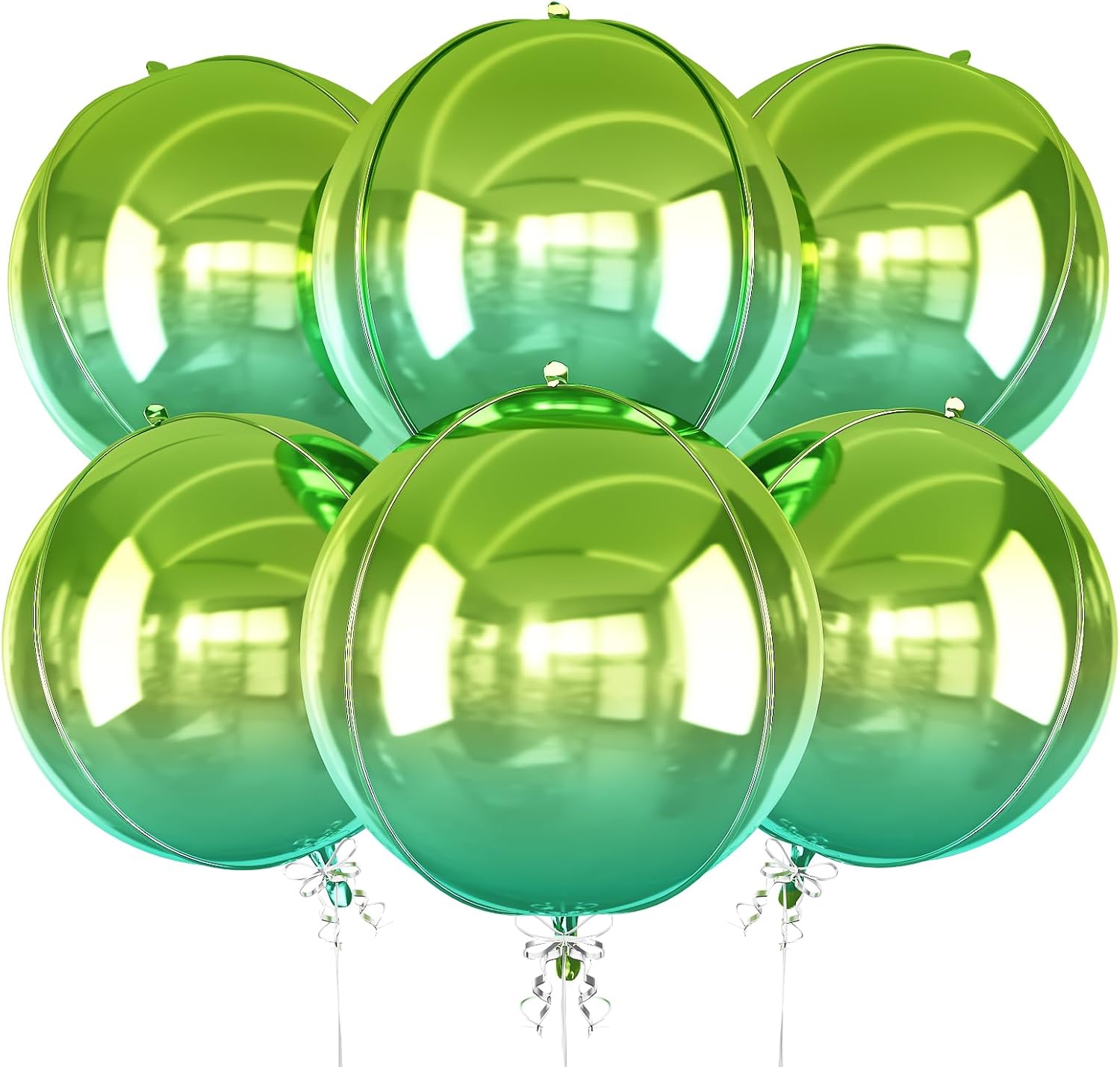 - Package: You will receive 6pcs 22inch 4D gradient green round foil balloon, 1 straw + 1 roll of ribbon. This mylar balloons green will be great as halloween decorations, balloons for green decorations, football birthday party decorations and more!
