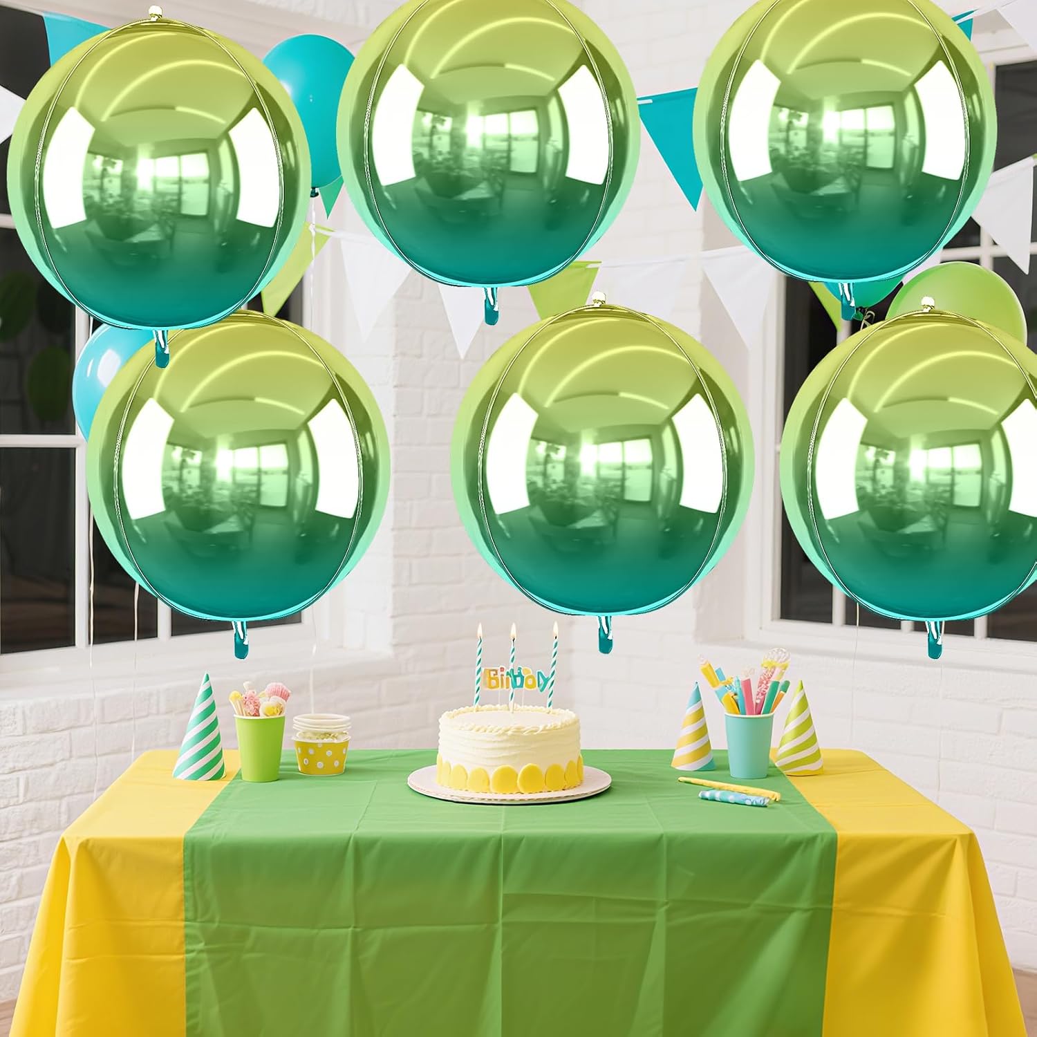 6Pcs Gradient Green Round Foil Balloons, 22" Large Helium Ball Mylar Balloon, Metallic Green Foil Balloon for Birthday Graduation Wedding Halloween Disco Prom Tropical Party Decorations