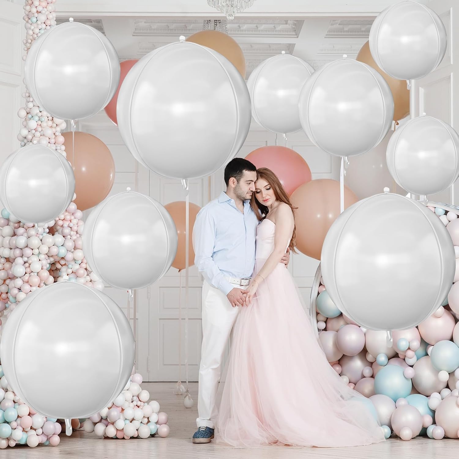 - Package: You will receive 12pcs 4D matte white round foil balloon, 3pcs 22inch + 4pcs 15inch + 5pcs 10inch + 1 straw + 1 roll of ribbon. Different sizes balloons in can meet your party needs. 10inch mini size balloons do not support helium filling and floating. The classic white balloons are perfect for any white-themed party.