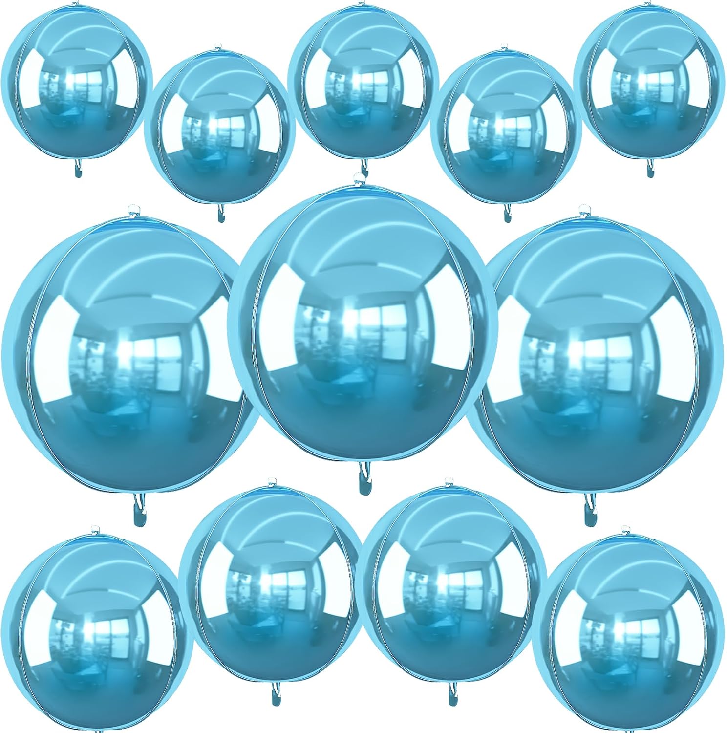 - Package: You will receive 12pcs 4D light blue round foil balloon, 3pcs 22inch + 4pcs 15inch + 5pcs 10inch + 1 straw + 1 roll of ribbon. Different sizes balloons in can meet your party needs. 10inch mini size balloons do not support helium filling and floating. The classic solid blue chrome balloons are perfect for any blue-themed party.