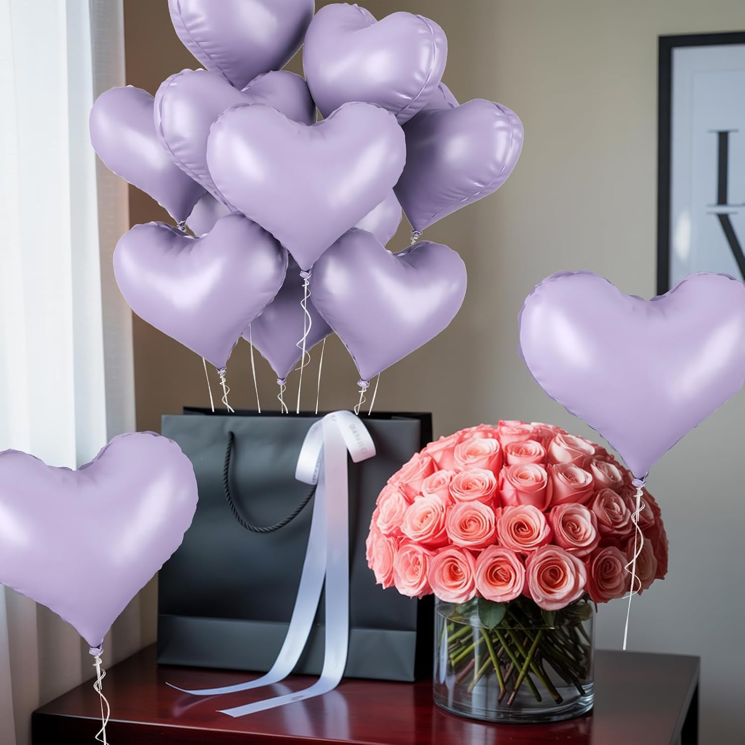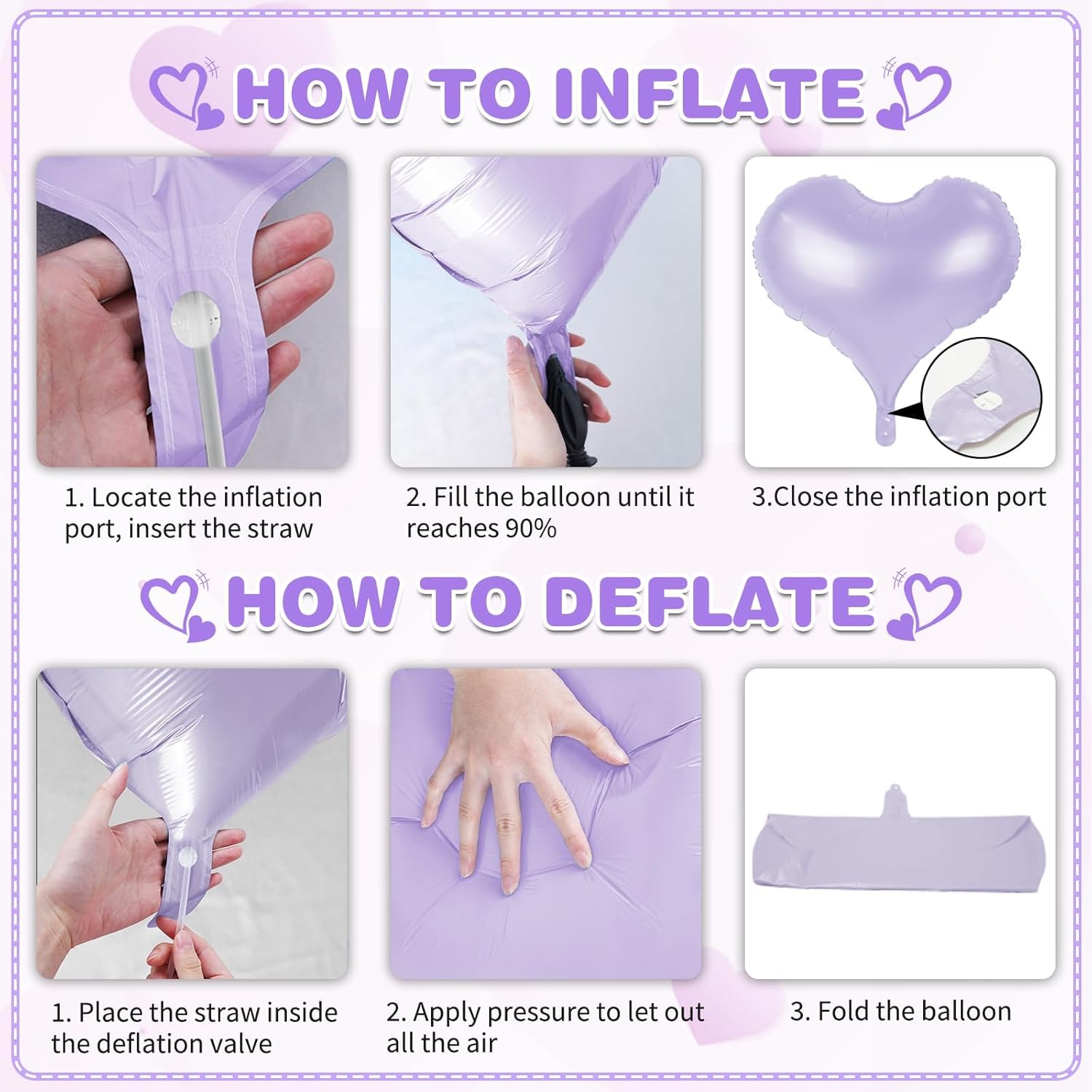 - 20 Inches Heart Balloons - Package contains 10 pcs purple heart balloons, 1pc straw and 1pc ribbon.The purple heart shaped balloon are ideal for any party. 20 inch is big and special enough to decorate your party and create a sweet and warm atmosphere!