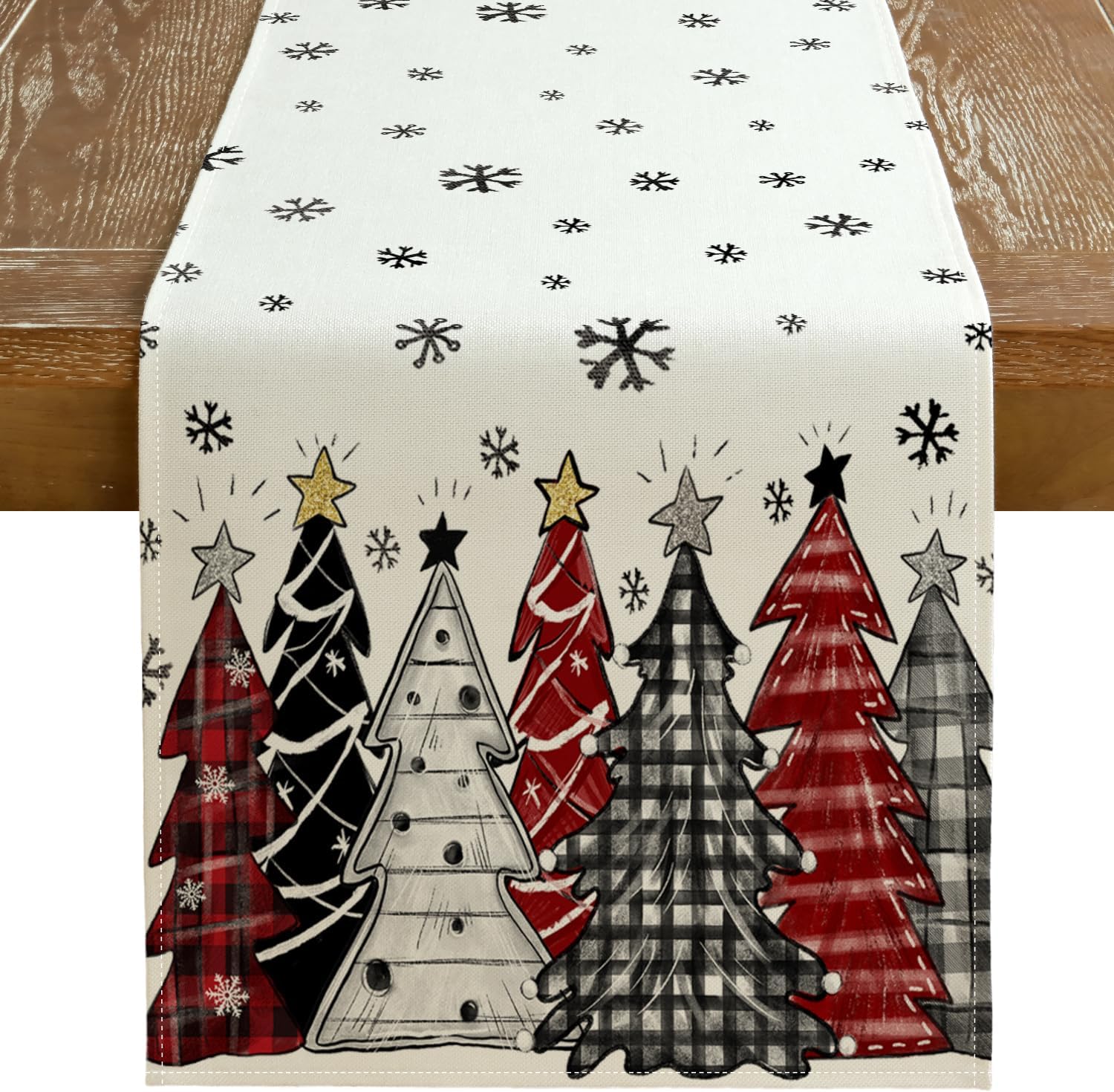 GEEORY Christmas Table Runner 13x108 Inch, Xmas Tees Snowflakes Holiday Decorative Farmhouse Table Decoration for Kitchen Dinning, Indoor Outdoor Dinner Party Decor ((Red & Black) GT165-108