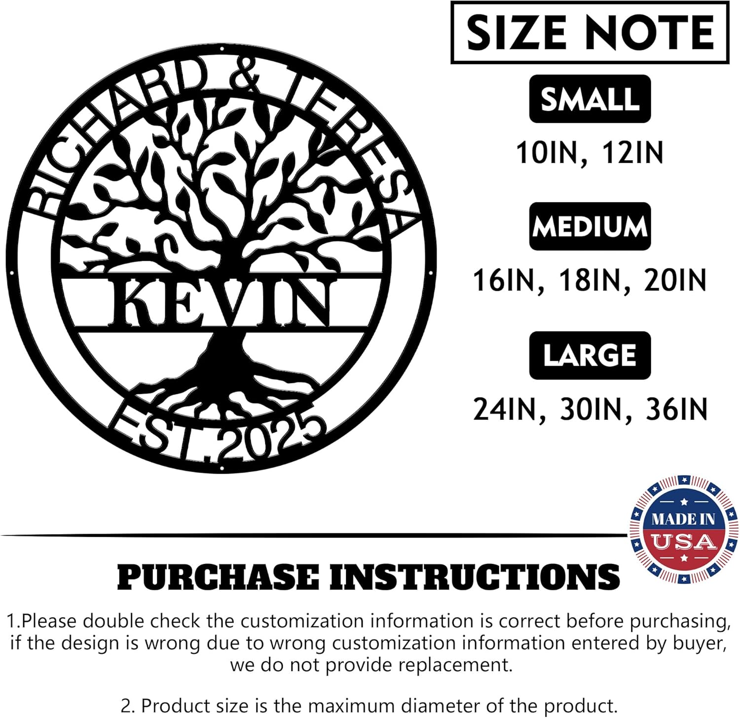 - Perfect Gift Ideas: We are confident that our personalized tree of life metal sign will exceed your expectations; Well made and meaningful, perfect for birthday, anniversary, housewarming, wedding, engagement, Christmas gifts for your family and friends; Sure to impress anyone who receives this gift.
