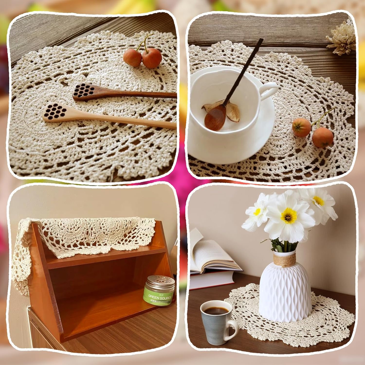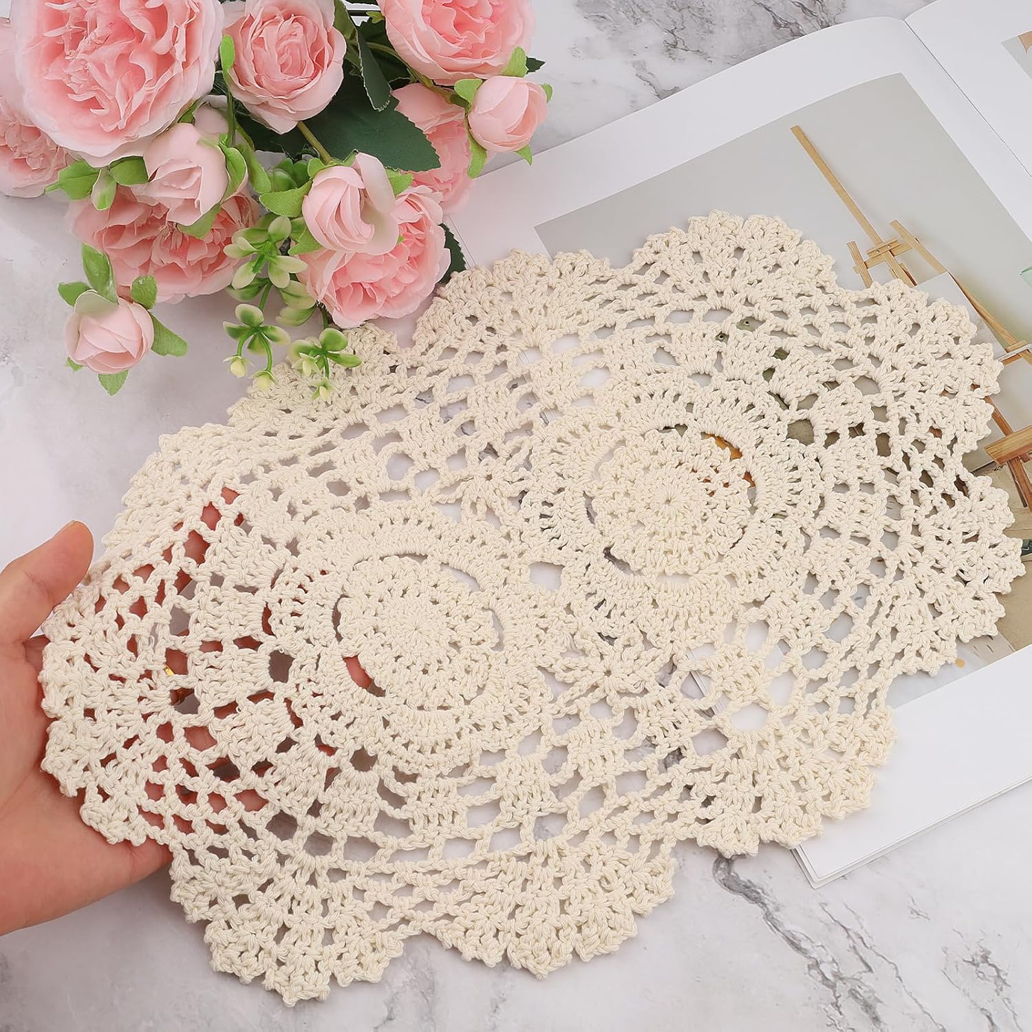 - Wide Application - The Crochet Coaster lace doilies for tables can be applied to many accasions, use as placemats, doilies coasters or ideal for dressing up your serving tray, vase, lamp, telephone or other tabletop items, DIY projects,. Idear for weddings, formal events and daily tableware and furniture decorations