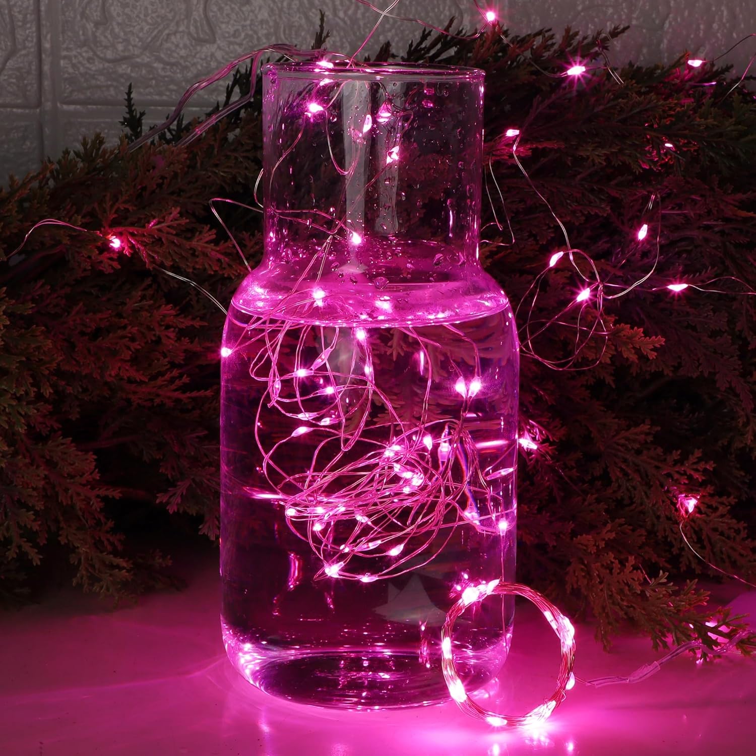 - 12 Pack Christmas Mini Fairy String Lights: Our 12 pack pink mini string lights with battery operated, made of flexible copper wire that can be easily bent and shaped easily. The durable wire and LEDs make the lights perfect for long daily use. They can make amazing costume decorations or wedding, party, holiday, concert and so on