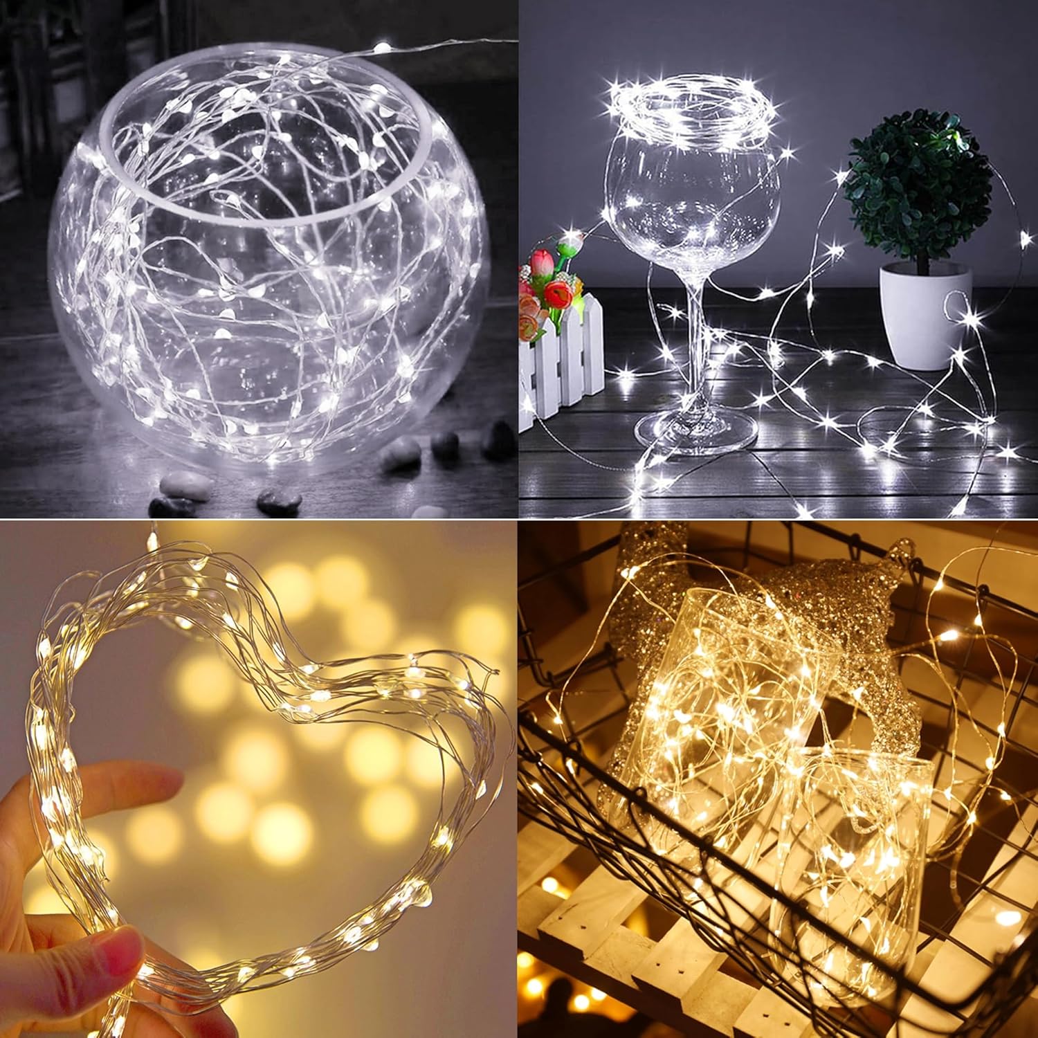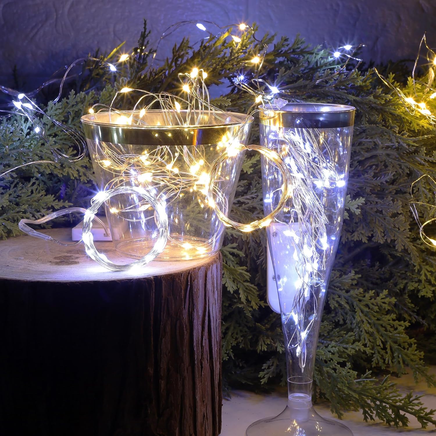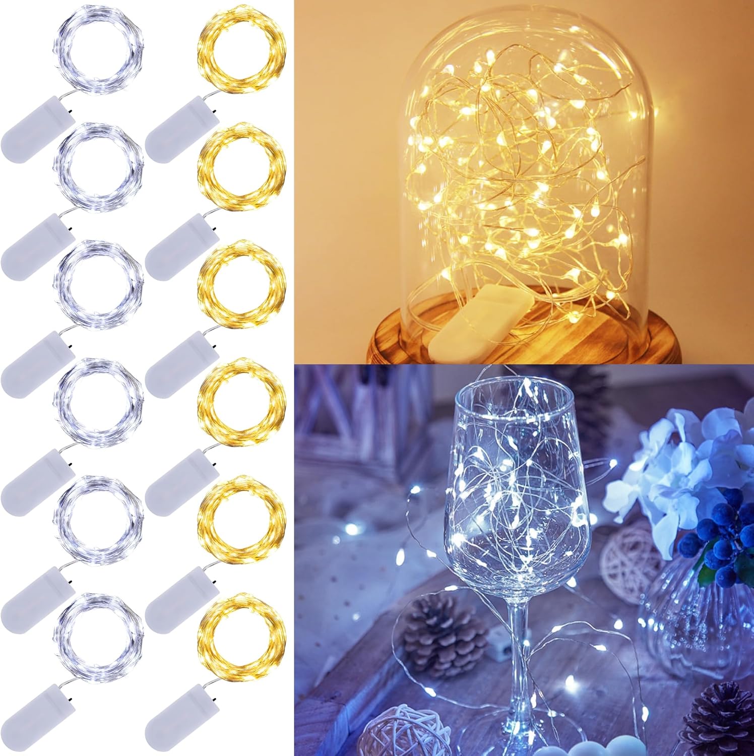 - 12 Pack Christmas Mini Fairy String Lights: Our 12 pack warm white & cool white mini string lights with battery operated, made of flexible copper wire that can be easily bent and shaped easily. The sturdy wire and LEDs make the lights perfect for long daily use. They can make amazing costume decorations or wedding, party, holiday, concert and so on