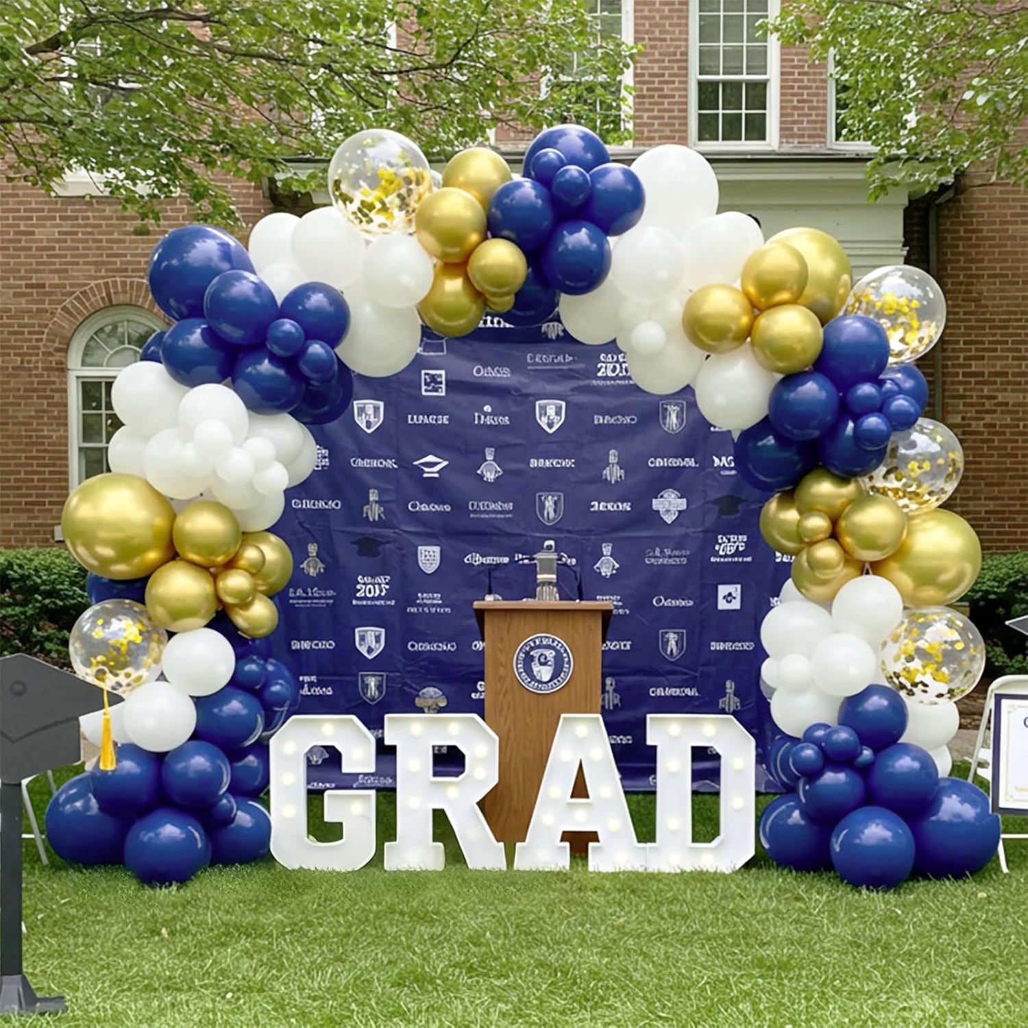 - Easy to Set Up - Simply fill it with air or helium, and you can begin to DIY your own navy blue gold balloon decorations, make balloon bunches, balloon garland, balloon wall or balloon arch, and so on. Create your own unique party scene