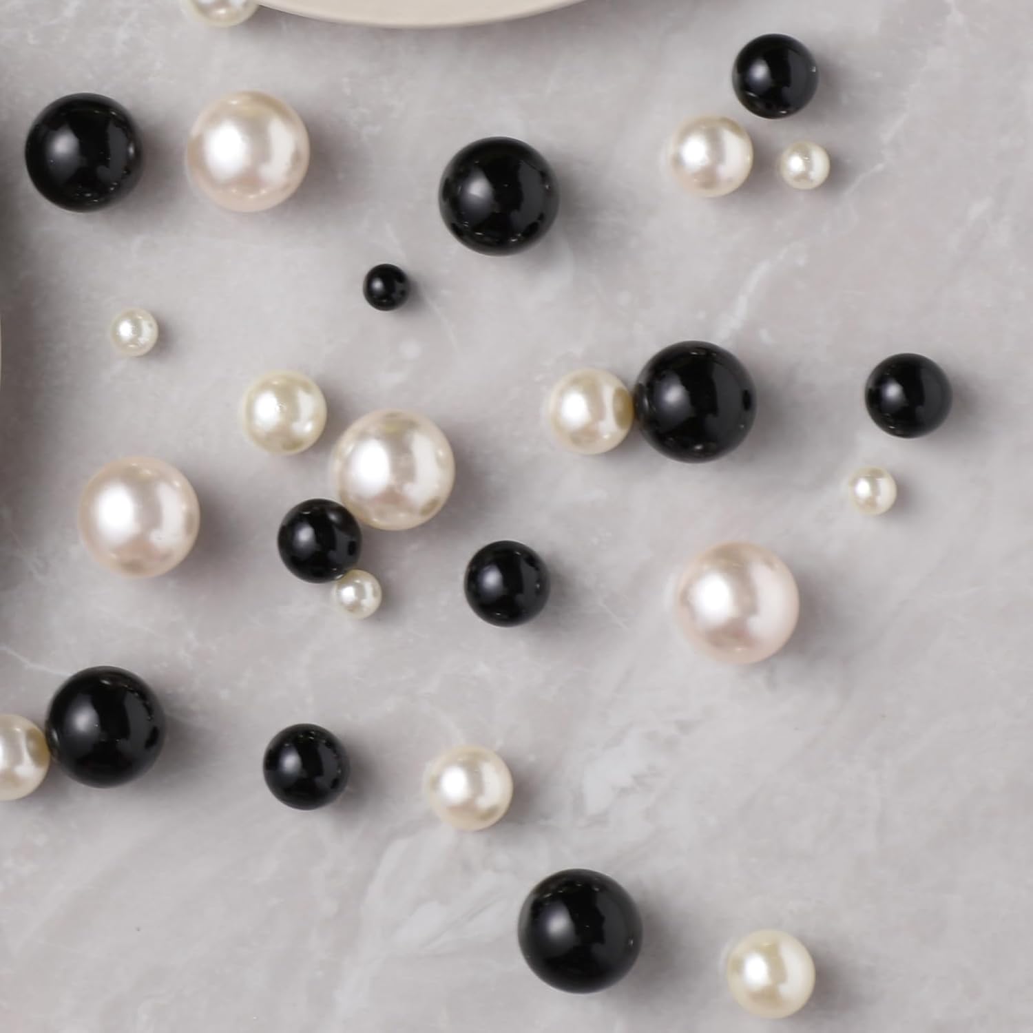 200 Pcs Vase Filler Beads Black and White Pearl Beads for Vase No Hole Pearls for Centerpieces Vases DIY Home Table Party Decor DIY Wedding 8/14/20mm