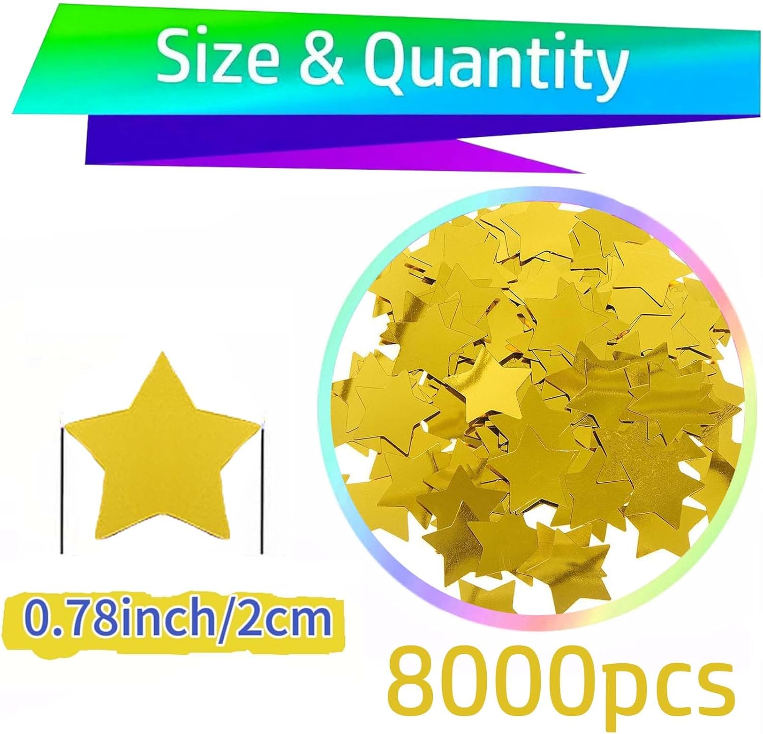 - QUANTITY: Includes 8000 pieces of vibrant star-shaped confetti pieces, perfect for creating festive atmospheres at parties and events