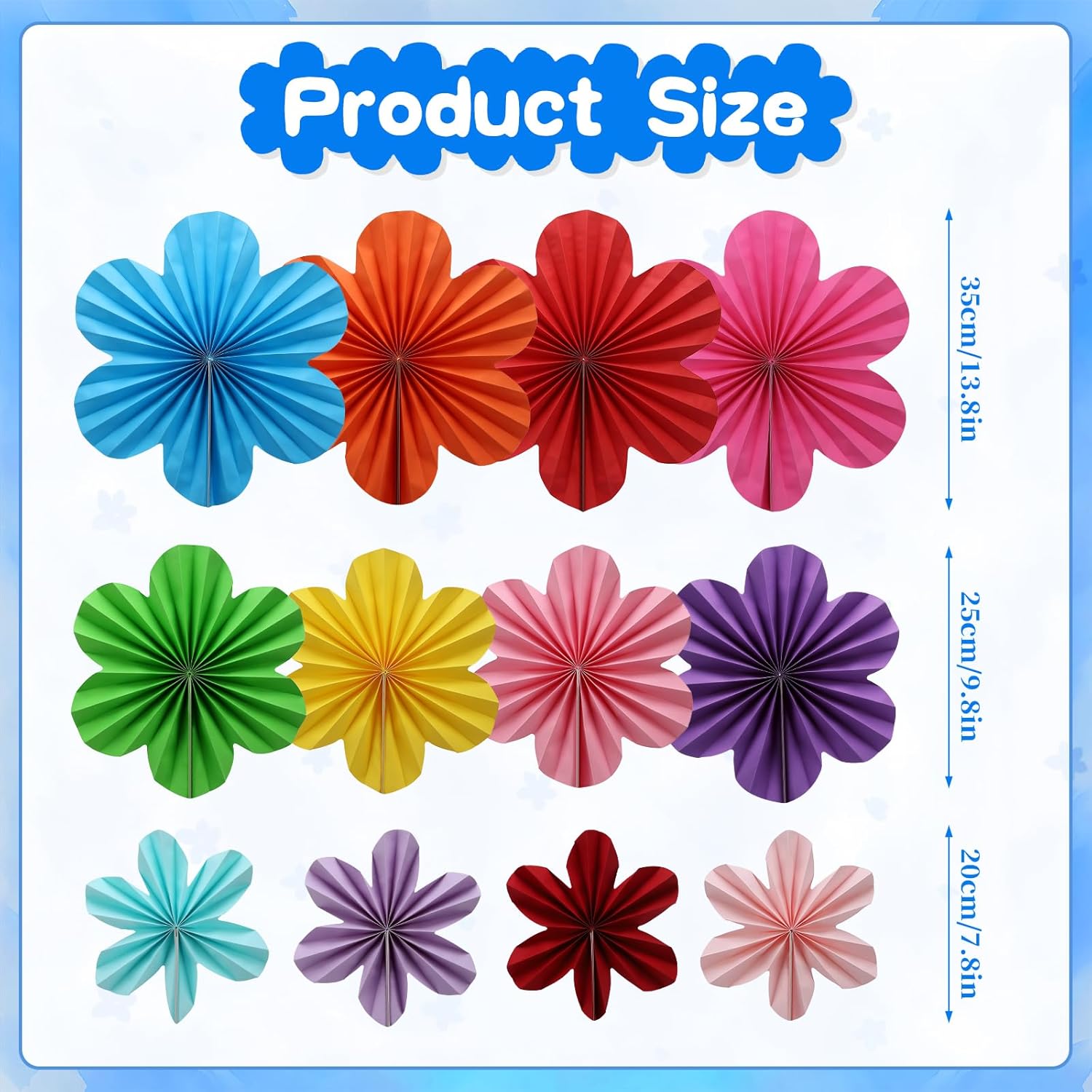 BestoFun 12 PCS Paper Flowers Fans Mexican Party Decorations Paper Flowers Decorations for Wall Girl Groovy Birthday Baby Shower Wedding Bachelorette Room Hanging Décor