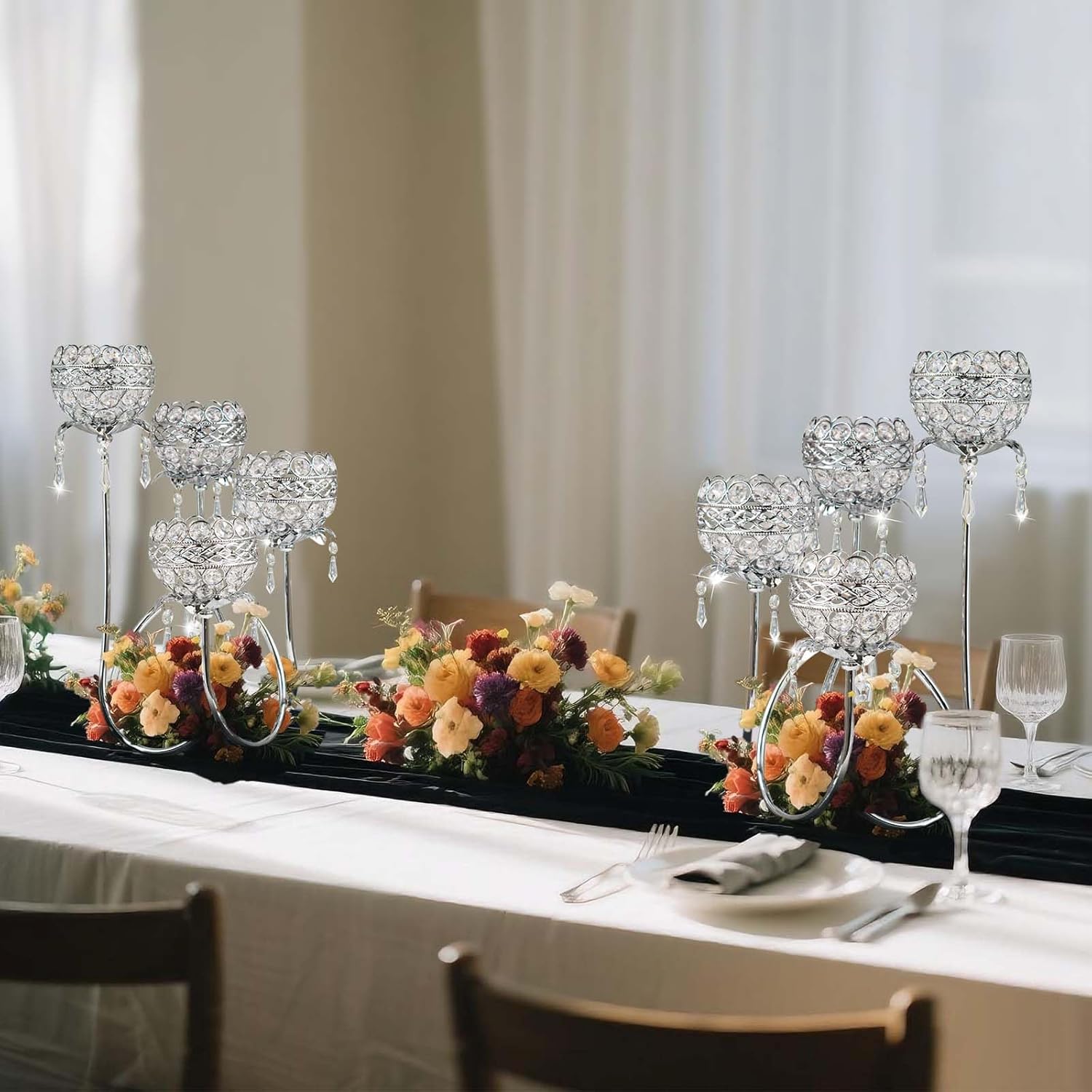 - Grand 4-Arm Elegance:Stand tall at 15.7 inches (40cm) with an impressive 11.8-inch (30cm) width, this candelabra features four gracefully curved arms for double the candle capacity of standard 3-arm designs, creating a breathtaking focal point as a table centerpiece.