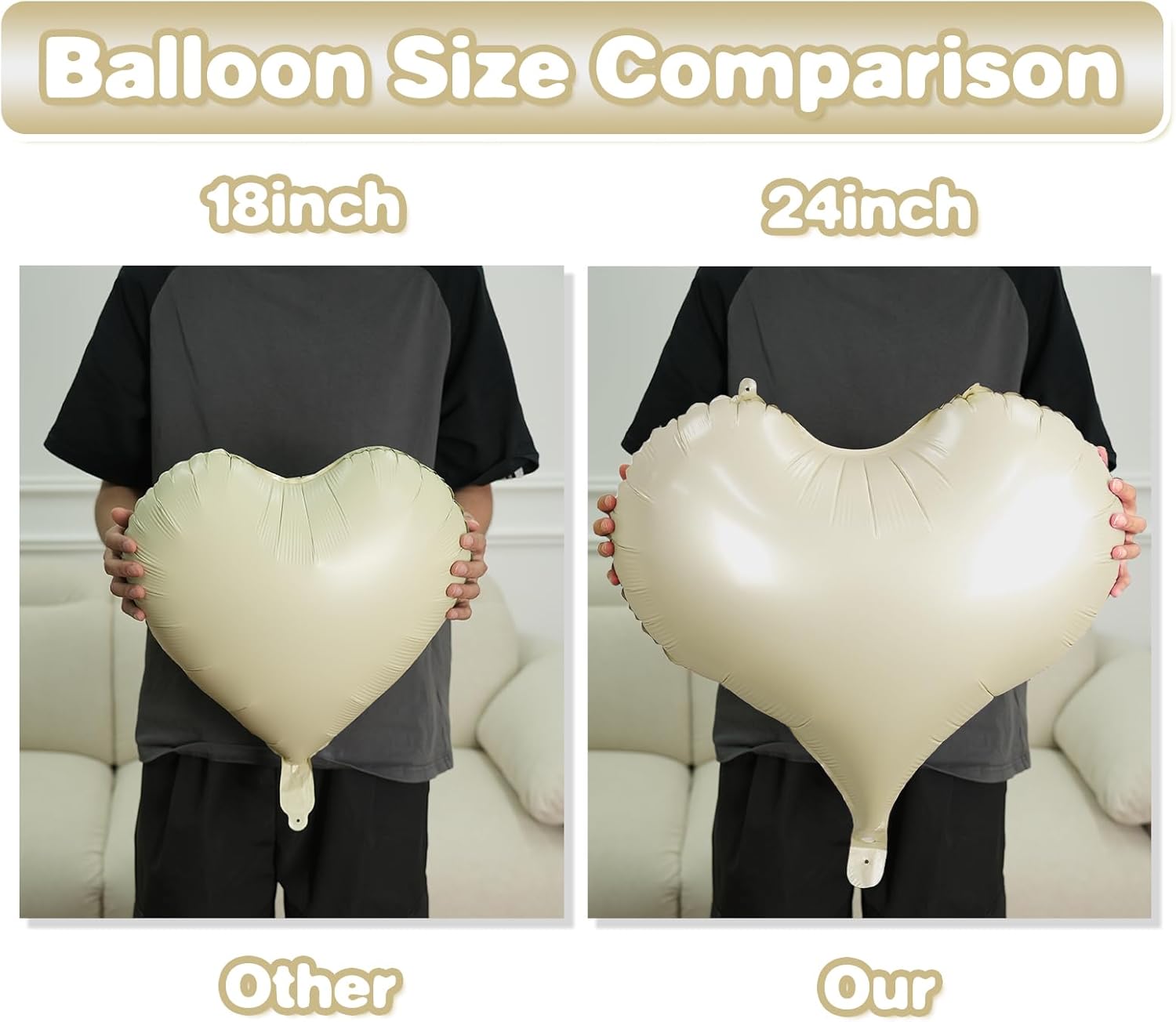 - Package: This set includes 6pcs of 24inch cream white heart foil balloons,1 ribbon,and 1 straw.The generous size makes these balloons perfect for transforming any space into a festive celebration venue, whether you're decorating for a wedding arch, photo backdrop, or party centerpiece.