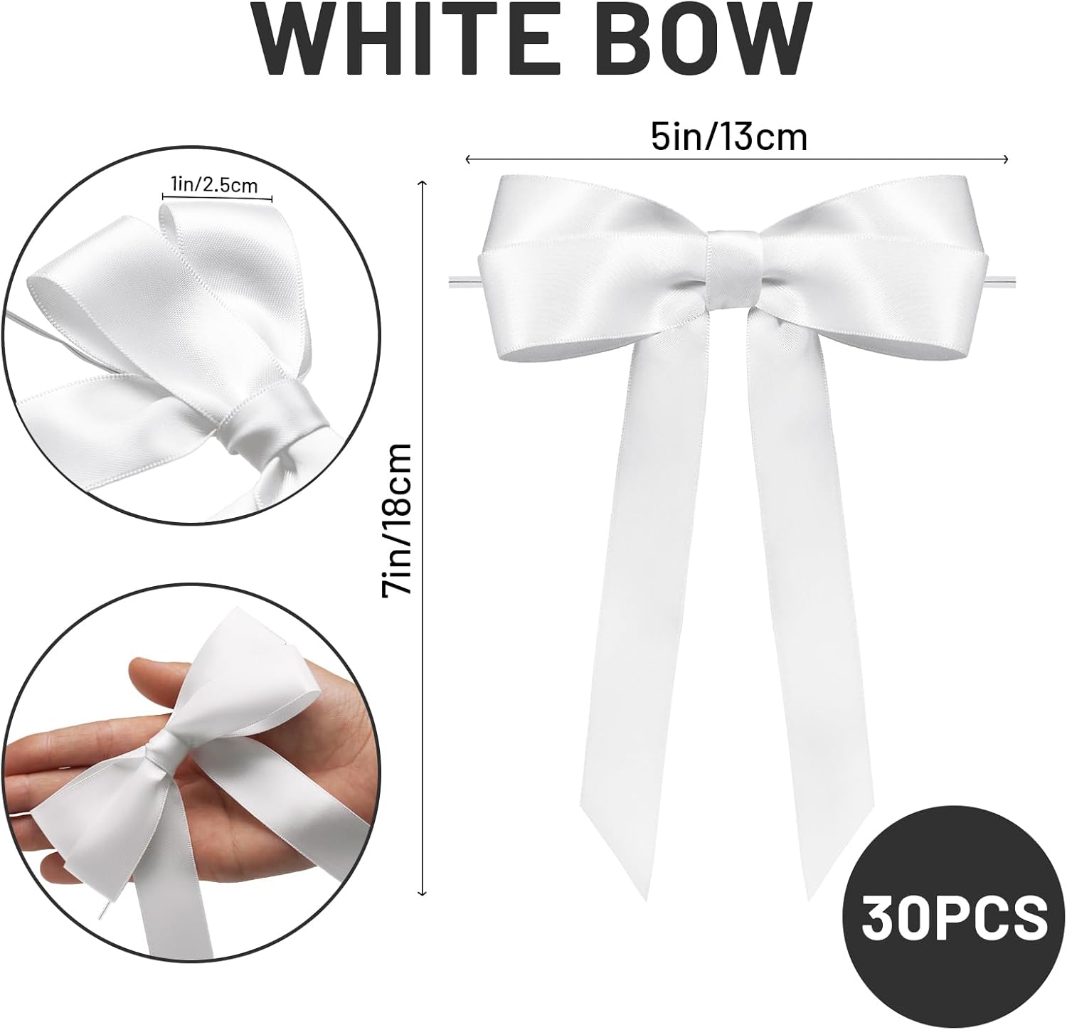 - Get everything you need in one pack: With 30 Pack bows, you get more decor for your money. Perfect for decorating in bulk for events or having a ready-to-go supply of a pink bow for gift, a white one for parties, and more.