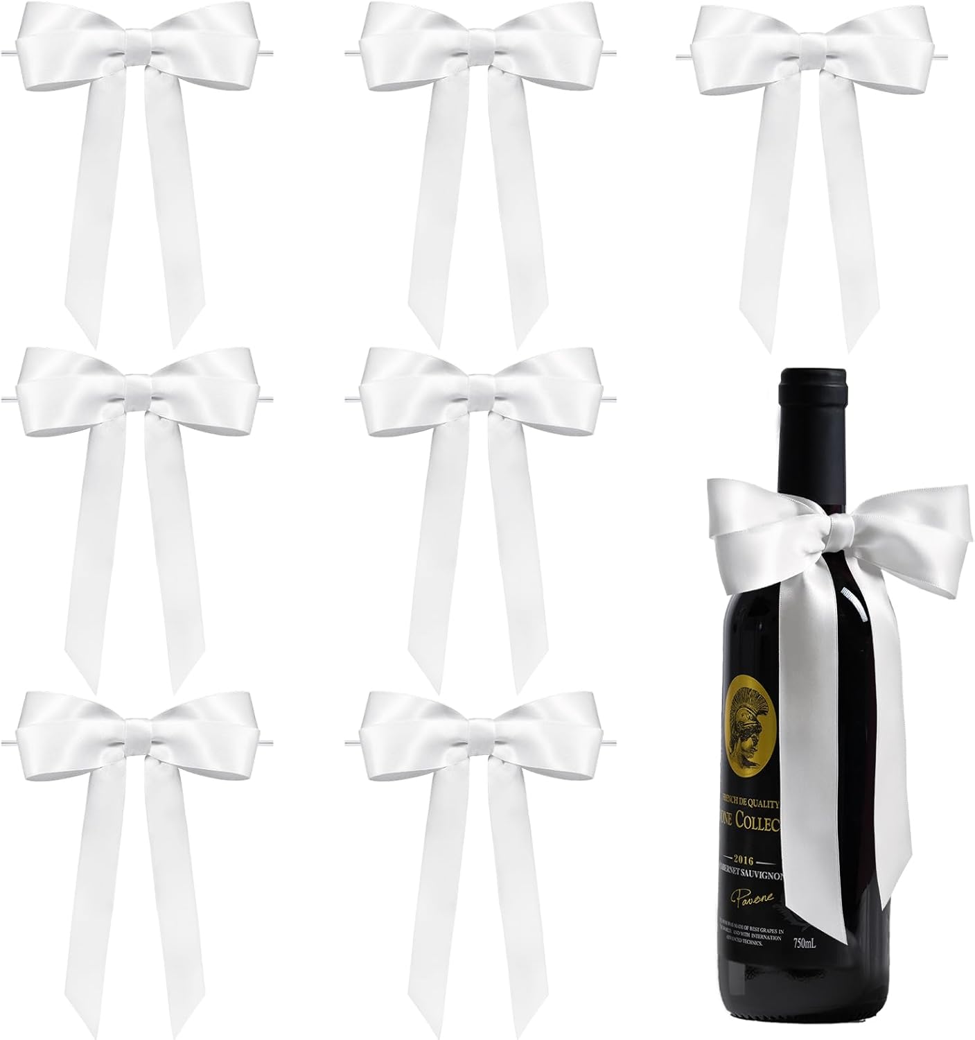 White Bows for Gift Wrapping, 5'' X 7'' Satin Gift Bows for Birthday, Wedding, Party, 30 Pcs
