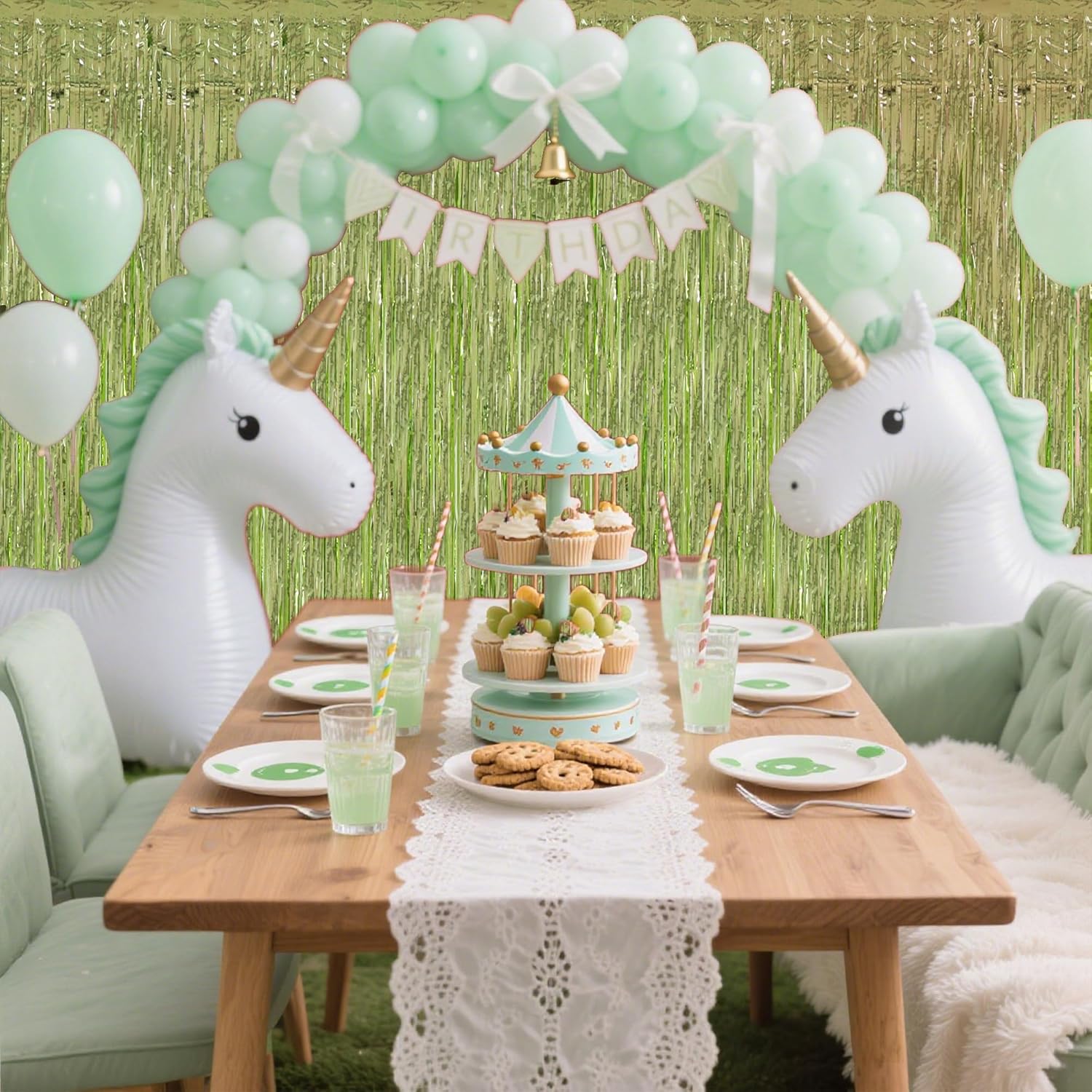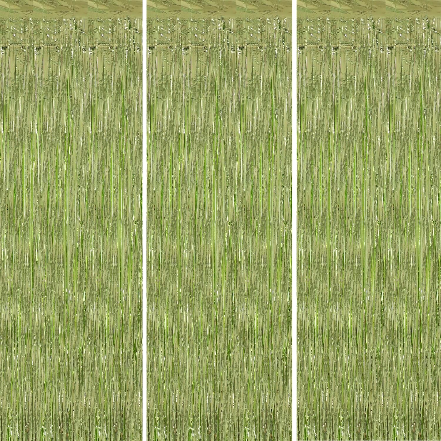TONIFUL 3Pcs Light Green Door Streamers,Green Photo Booth Backdrop,Metallic Streamers Green Foil Fringe Curtains for Birthday,Christmas,New Year,St. Patrick's Day Party Streamers Decor