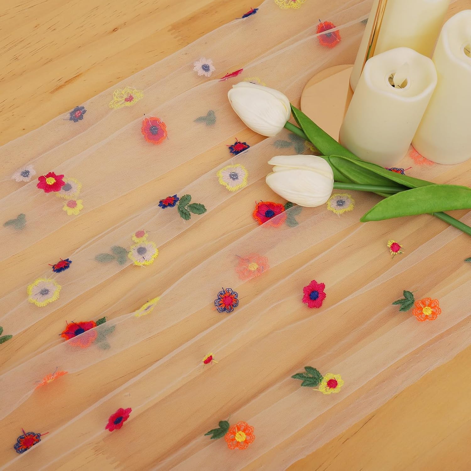 - High-Quality Tulle Fabric: Made from white chiffon fabric, this lightweight embroidered table runner is not only beautiful but also adds a touch of elegance to your dining experience. Each sheer floral table runner measures approximately 29 x 120 inches.
