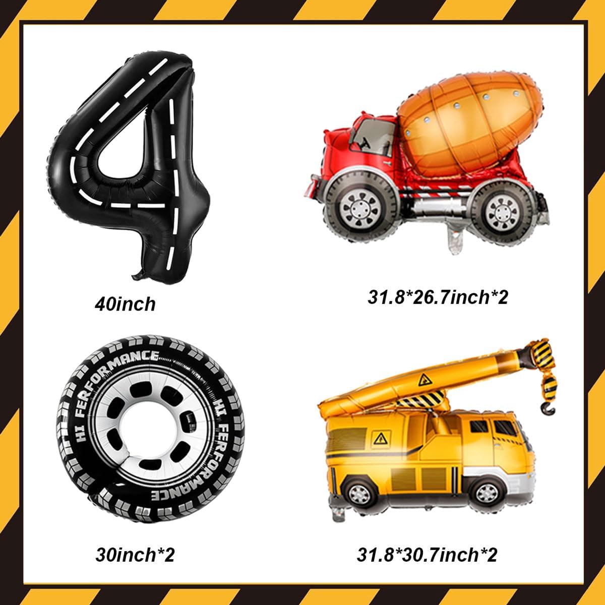 - Package Contents: Includes 4 Pcs construction party balloons,40inch 1pcs black number 2 balloon,2pcs big tire balloons,1 rolls of ribbon, 1pcs plastic straw. Sufficient quantity can meet your matching decorative needs, add a joyful atmosphere to your party