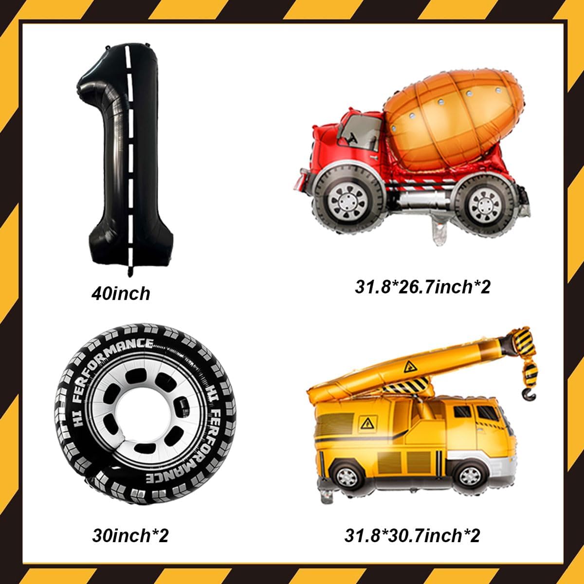- Package Contents: Includes 4 Pcs construction party balloons,40inch 1pcs black number 2 balloon,2pcs big tire balloons,1 rolls of ribbon, 1pcs plastic straw. Sufficient quantity can meet your matching decorative needs, add a joyful atmosphere to your party
