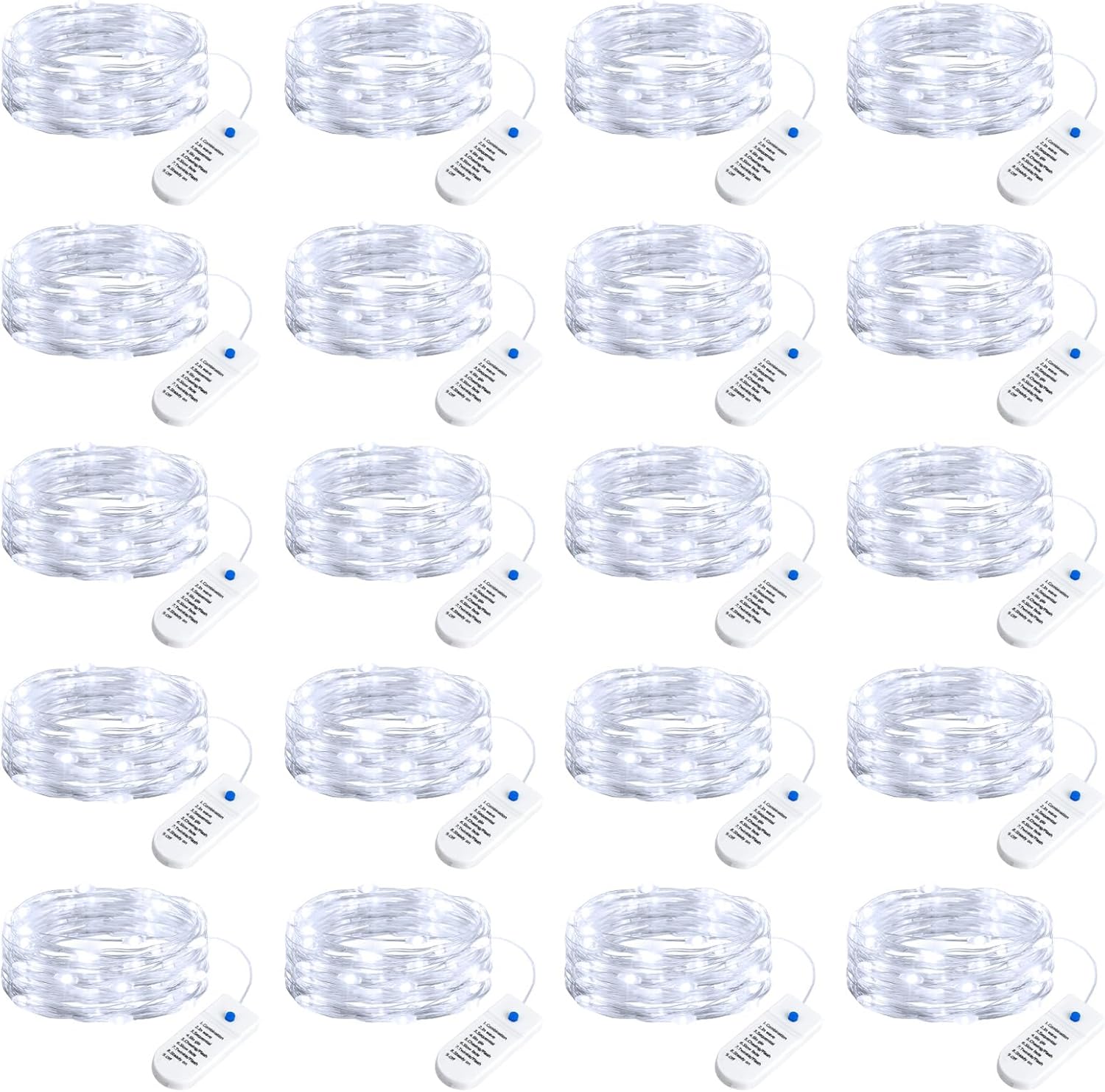 Minetom 20 Pack Fairy Lights Battery Operated String Lights, 8 Modes & Timer, 7ft 20LED White Waterproof Silver Wire Twinkle Lights, Firefly Starry Moon Lights for Mason Jars DIY Christmas Wedding