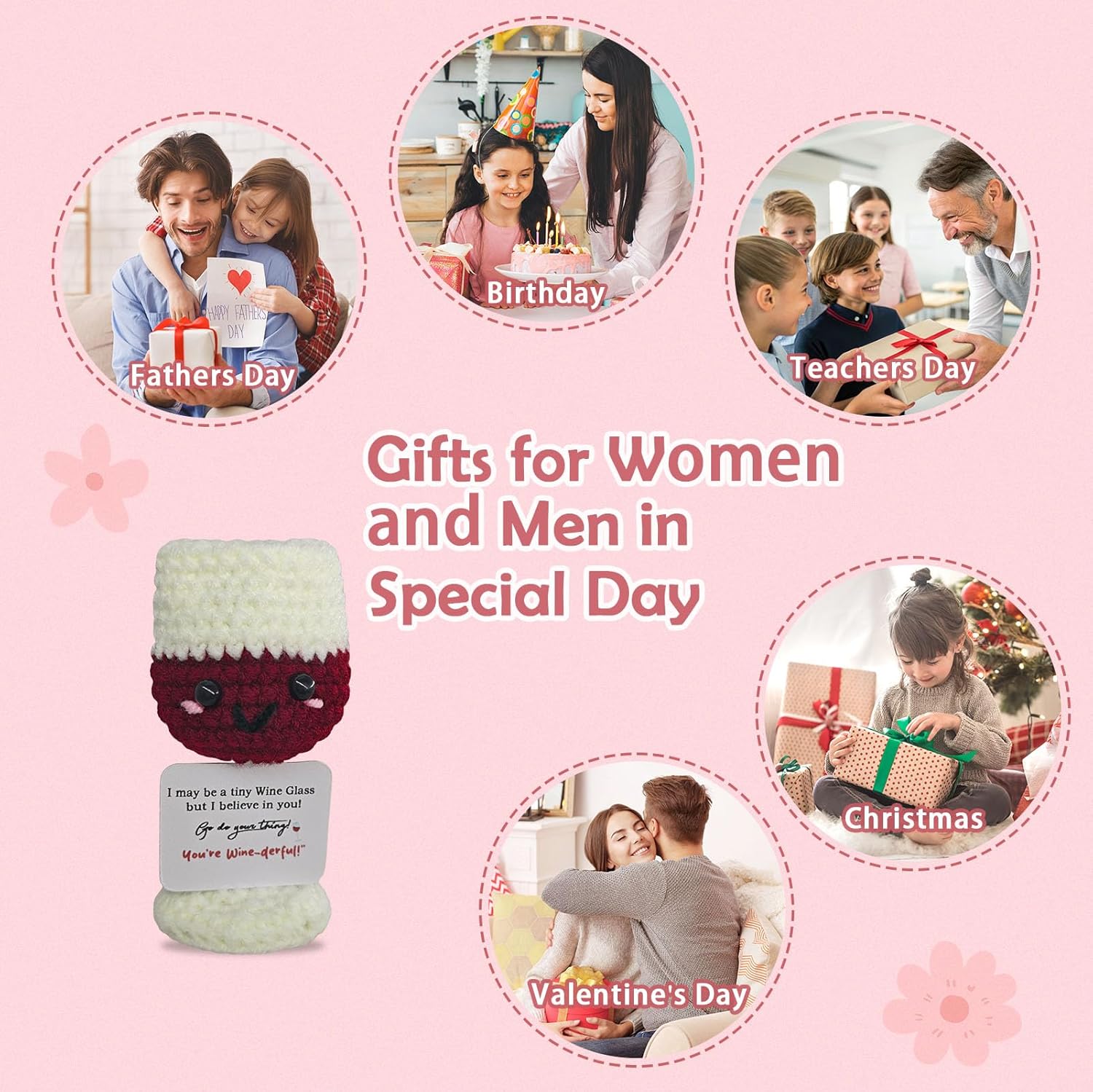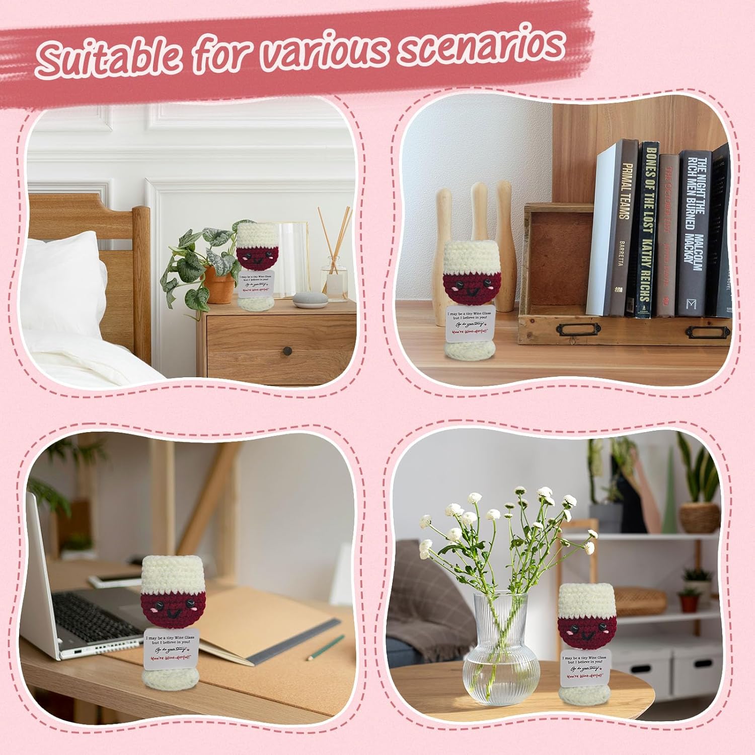 Handmade Mini Wine Glass Crochet,Birthday Gift for Wine Lovers,Funny Emotional Support Crochet Wineglass,Home Bar Happy Hour Accessories for Men Women Drinkers,Fashion Decoration