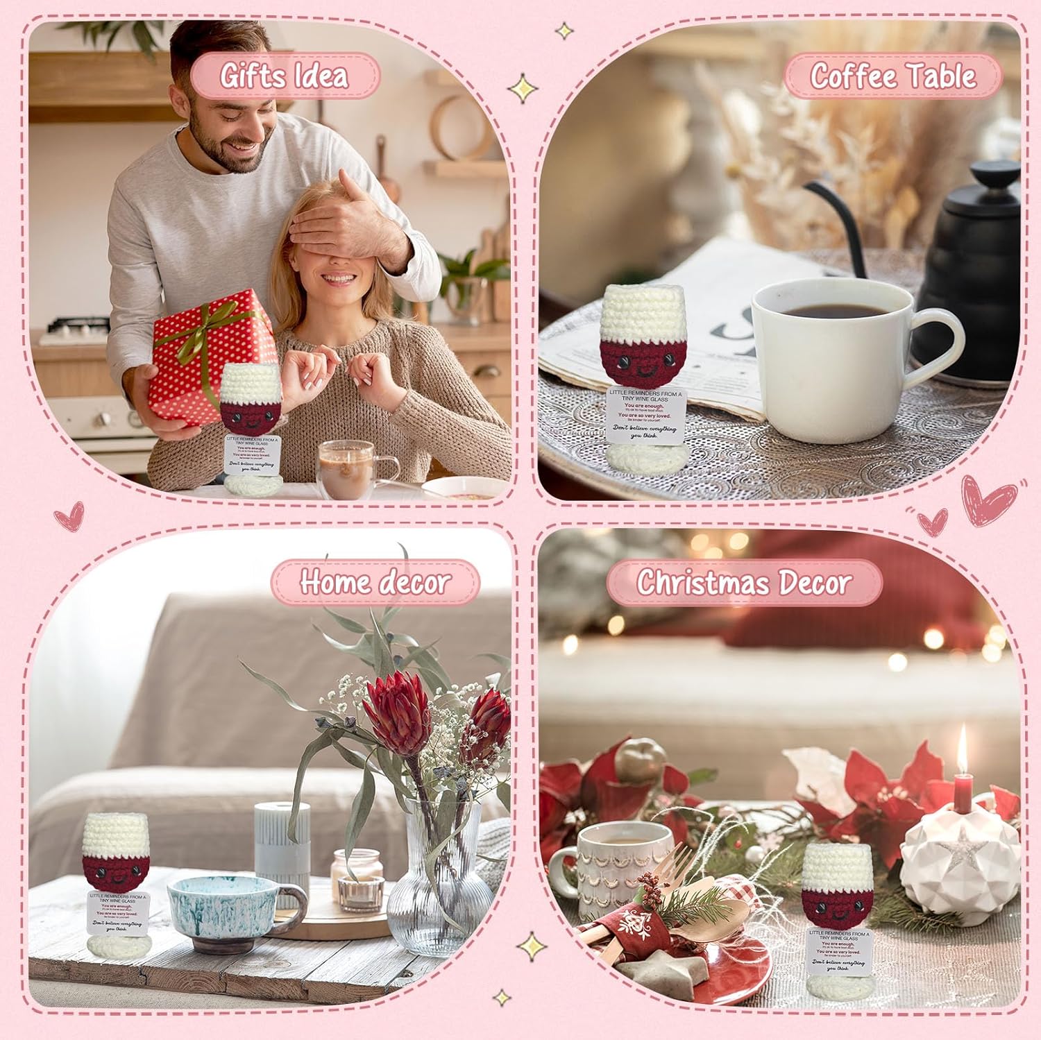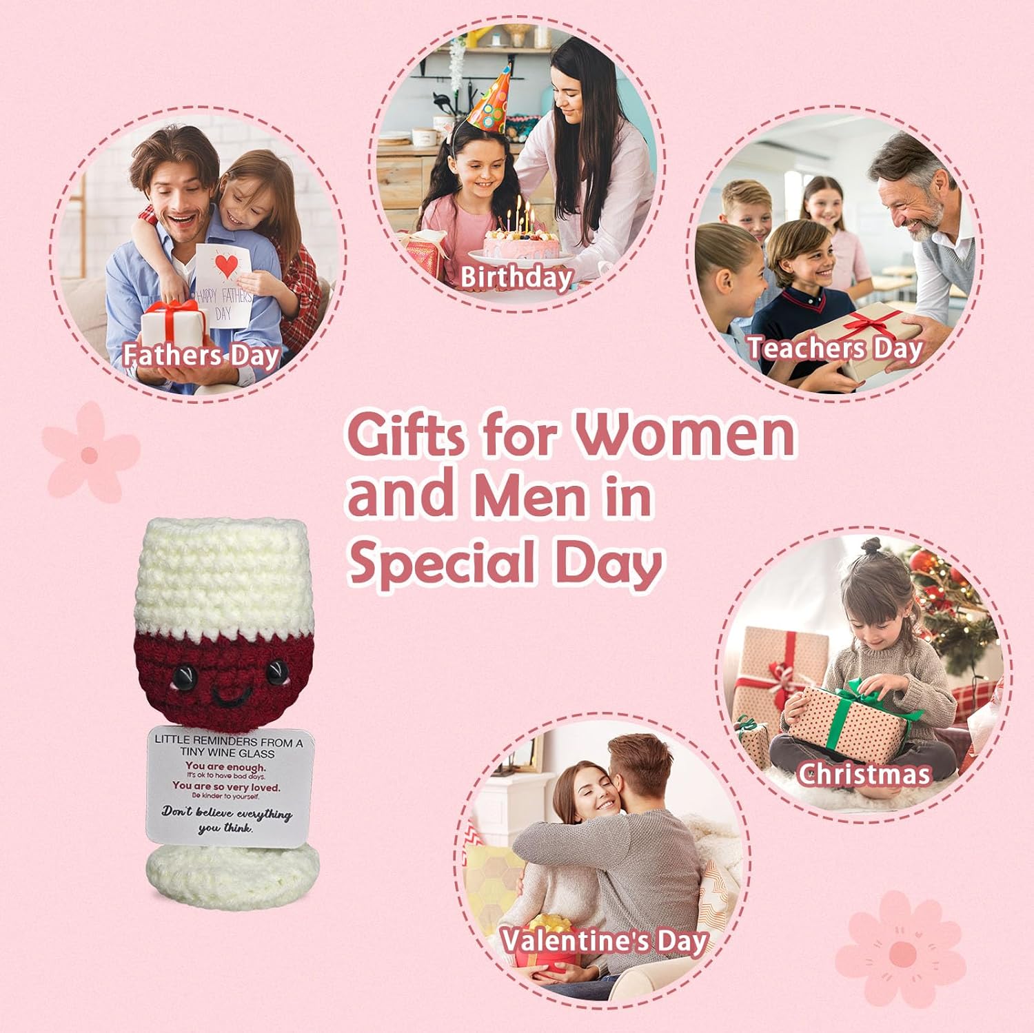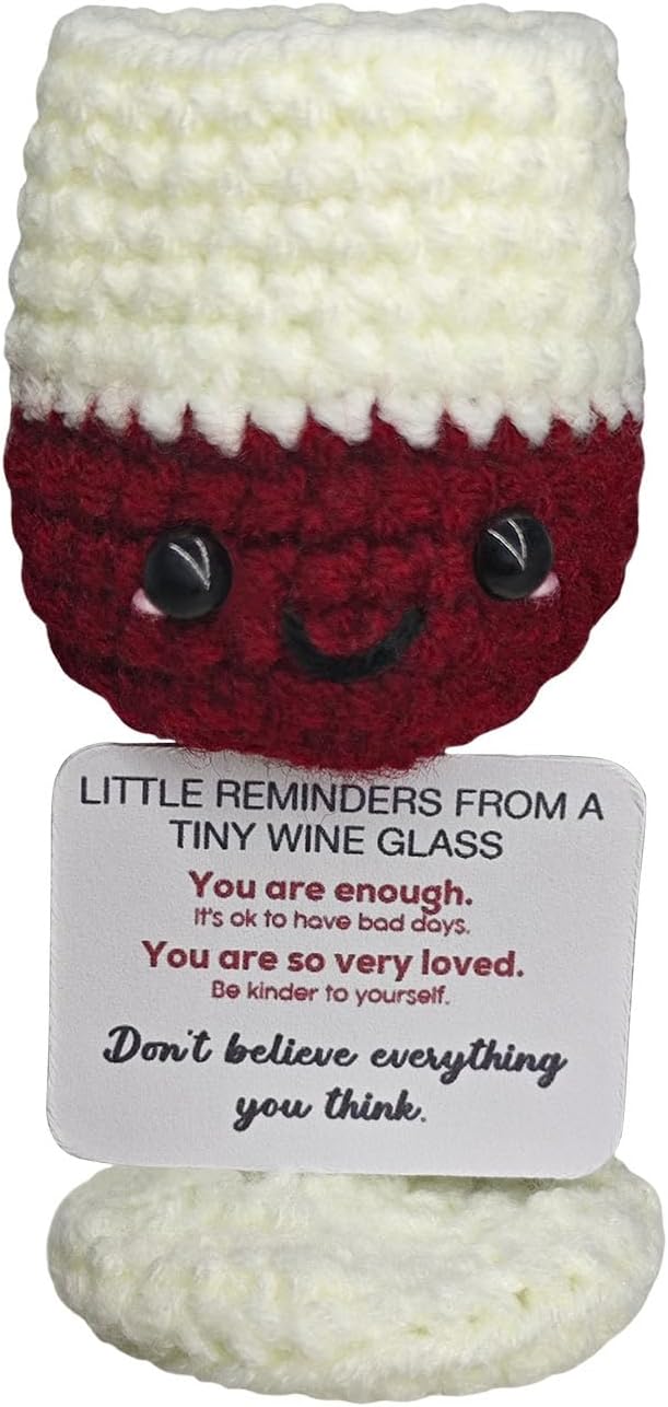 Mini Wine Glasses,Funny Emotional Support Crochet Glass Birthday Gift for Wine Lovers,Cute Home Bar Decoration for WineNight Unique Happy Hour Accessory,Wineglass Gift for Men Women Drinkers