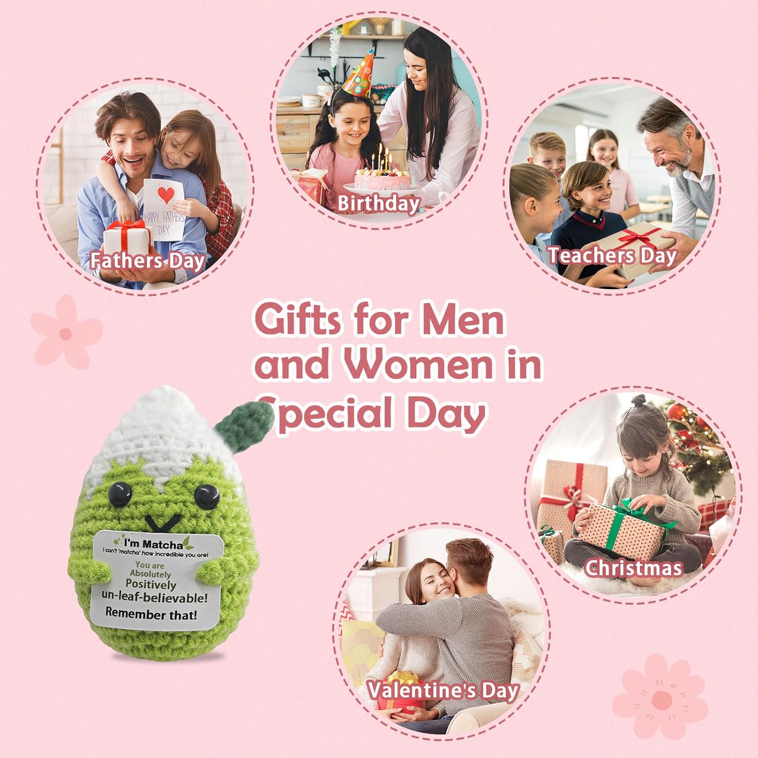 Mini Matcha Crochet Gift,Cute Handmade Positive Crochet,Birthday Gifts for Women Men Presents,Handmade Emotional Positive Crochets Matcha Decor,Office & Home Decor