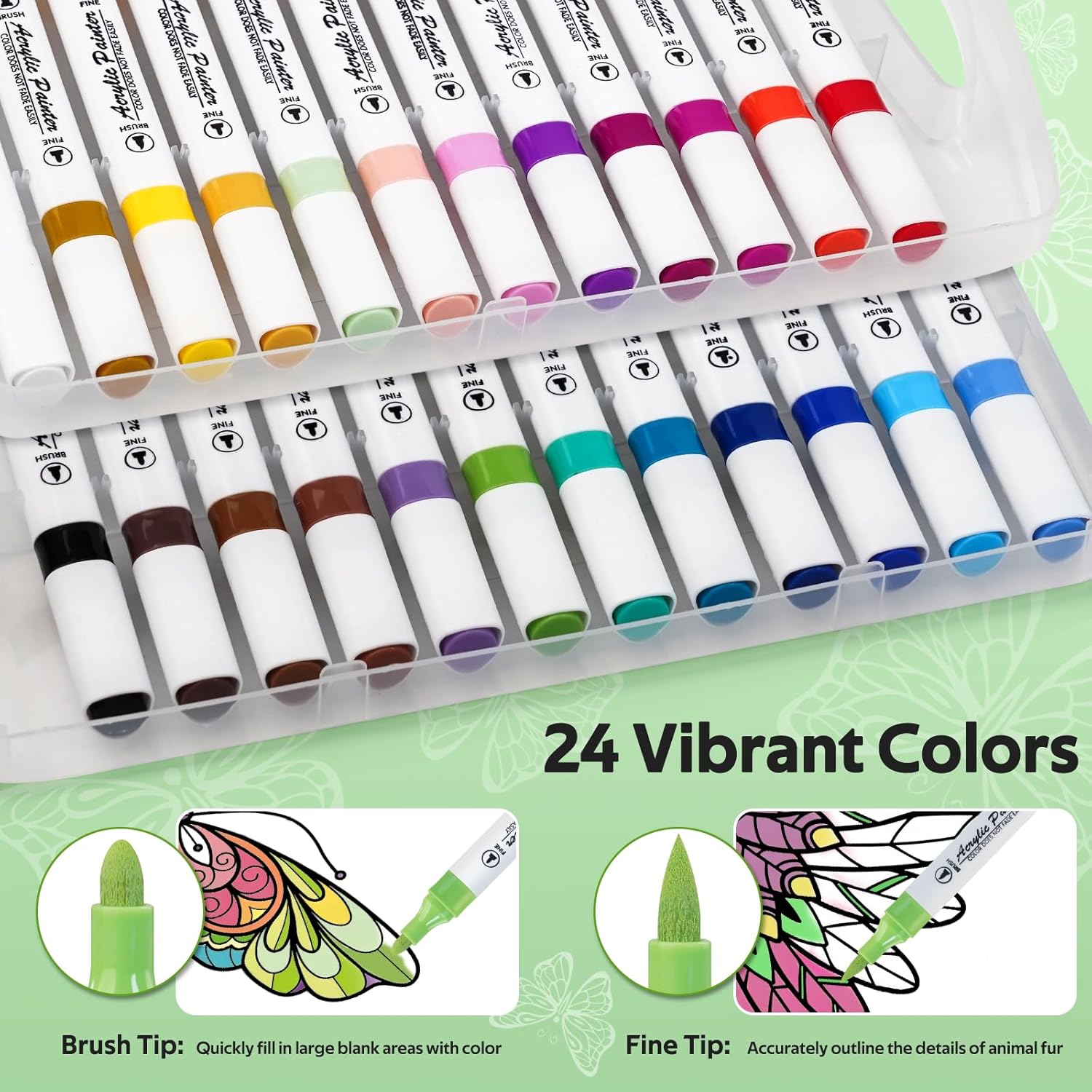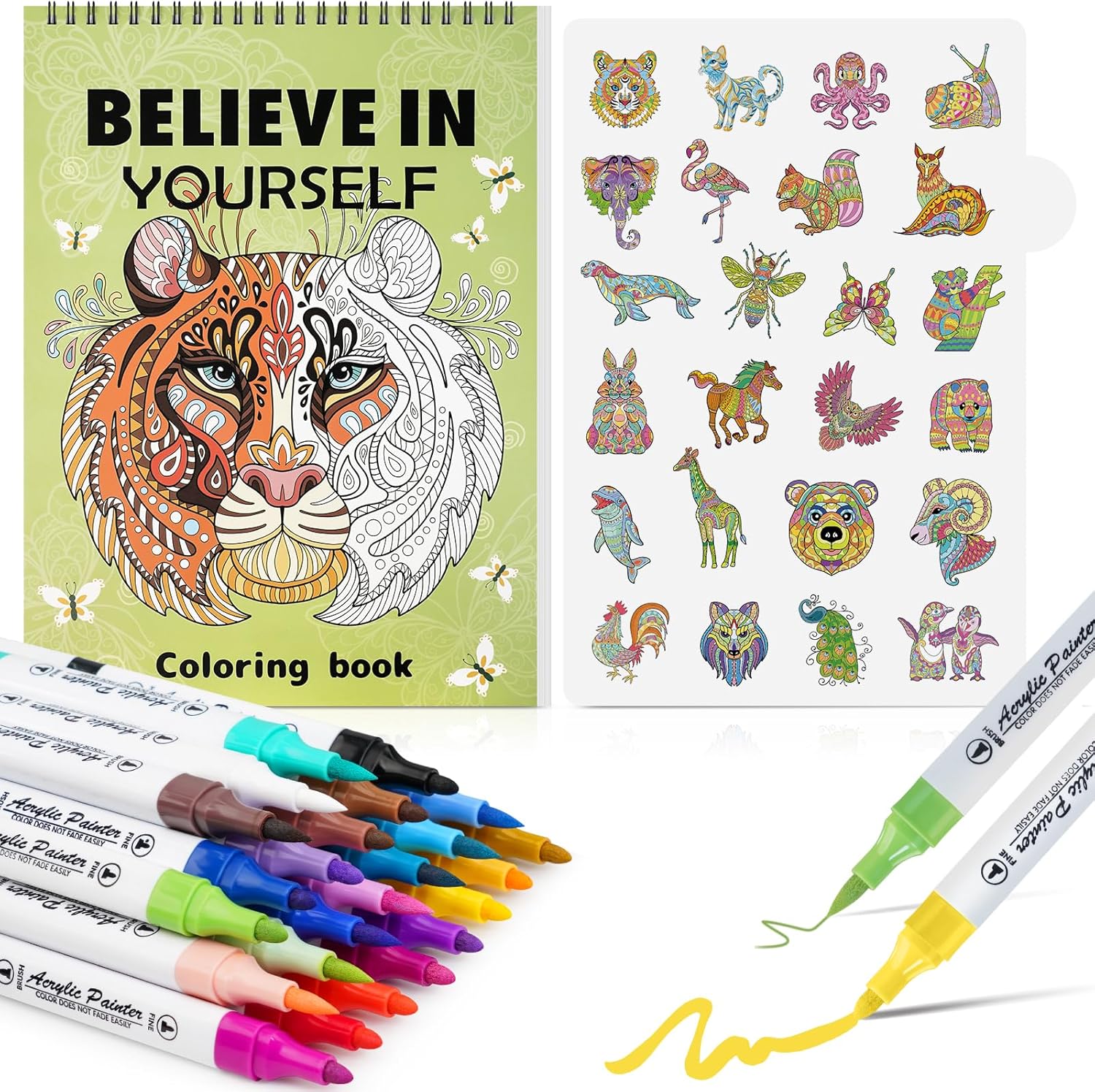 - Coloring Book Markers:This coloring books set comes with 24-color dual-tip markers. The bold tip allows for quick filling of large color areas, while the fine tip precisely outlines animal fur and details. The ink of the markers is long-lasting and fade-resistant. The markers for adult coloring books won’t bleed through the pages of our adult coloring books.