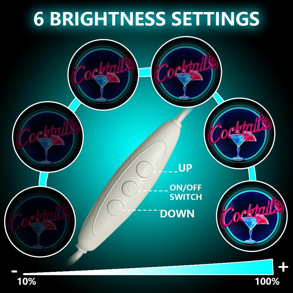 Cocktails Neon Signs for Wall Decor,UV Print Cocktails Glass LED Neon Light Up Sign for Beer Bar Art Wall Lights,Bar Party,Pub,Night Club,Man Cave Decor,Adjustable Brightness