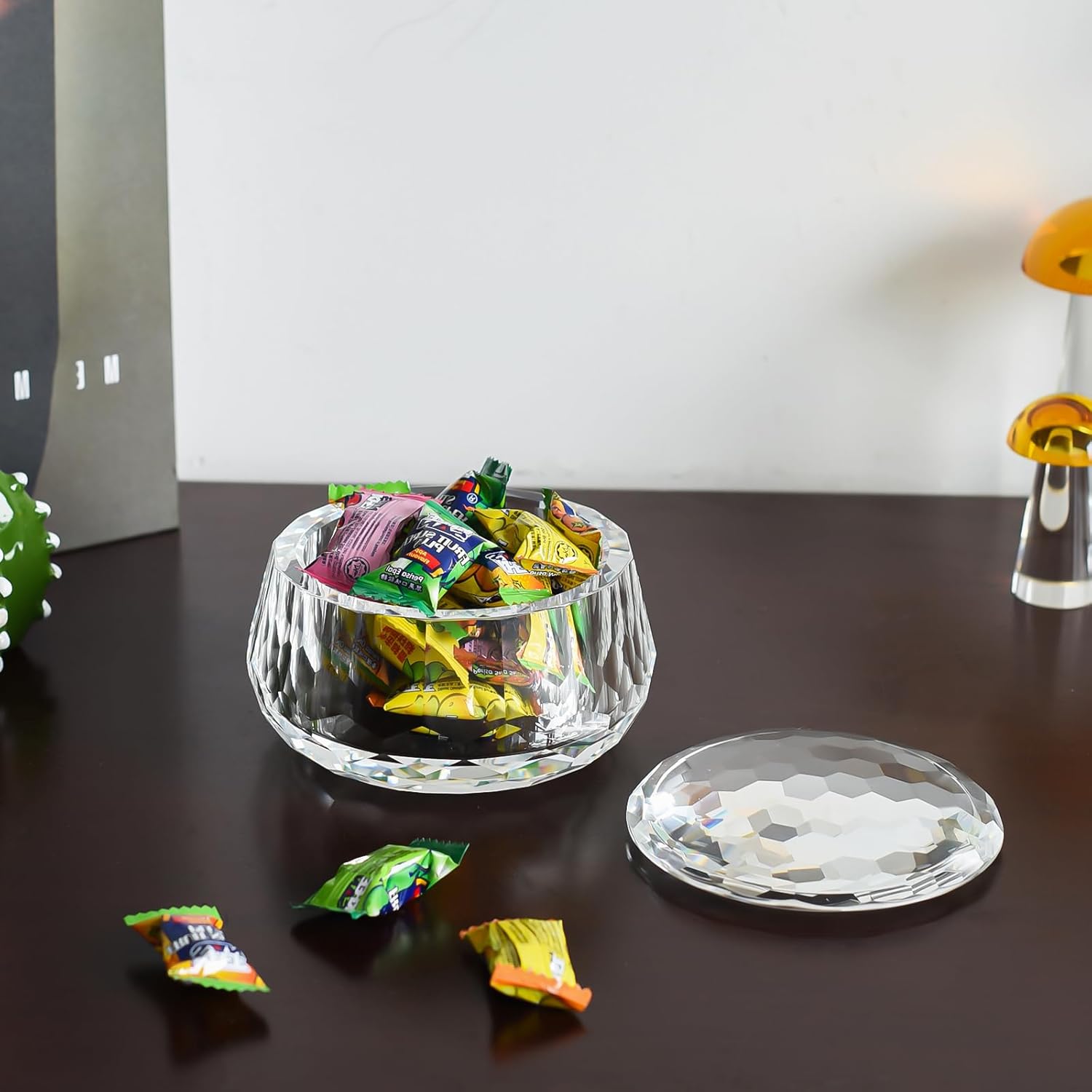 - Grade Lead-Free Crystal Candy Jar : The candy dish is perfect for storing various items like candy, sugar, coffee beans, tea leaves, cookies, nuts, chocolate, and dried fruit, In addition to food storage, this jar can also be used as a decorative piece or for organizing small items like cotton balls, hair ties, or office supplies.