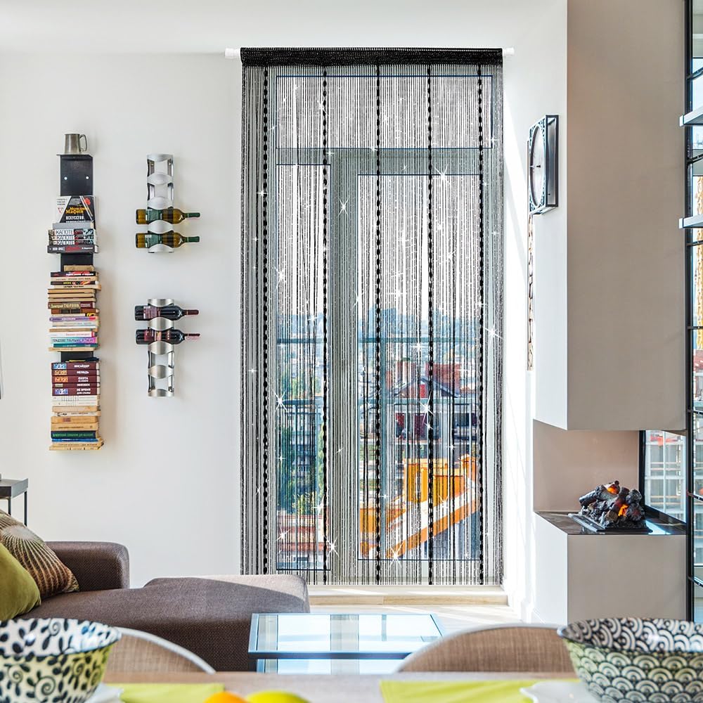 - The string curtain is convenient is install and remove without damaging the wall. The panel string curtain prevent the light, dust while diving the spaces, and also keep the air fresh and healthy.