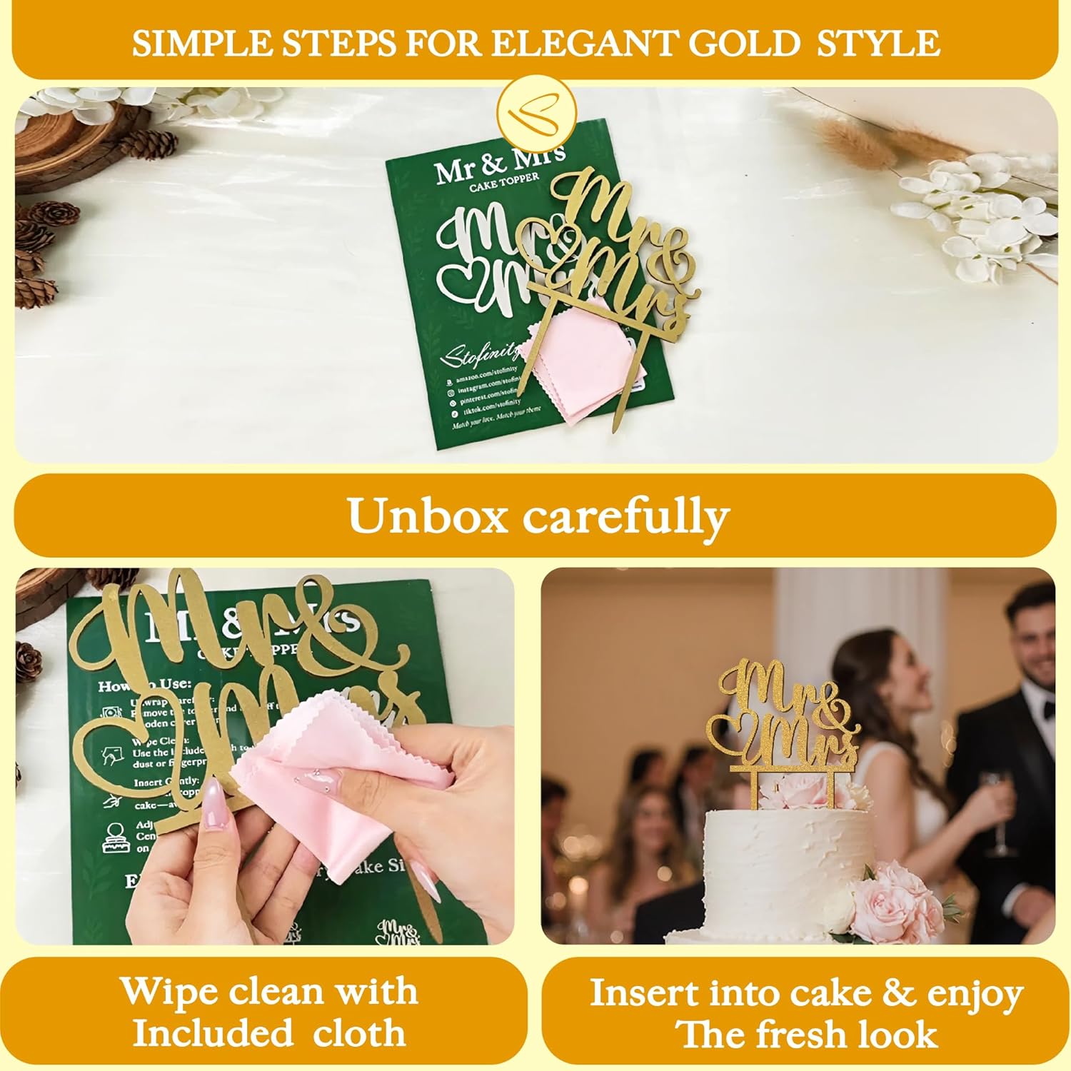 - Set include: features 1 stunning golden bride and groom cake topper, designed as a classic mr and mrs cake sign for a timeless look