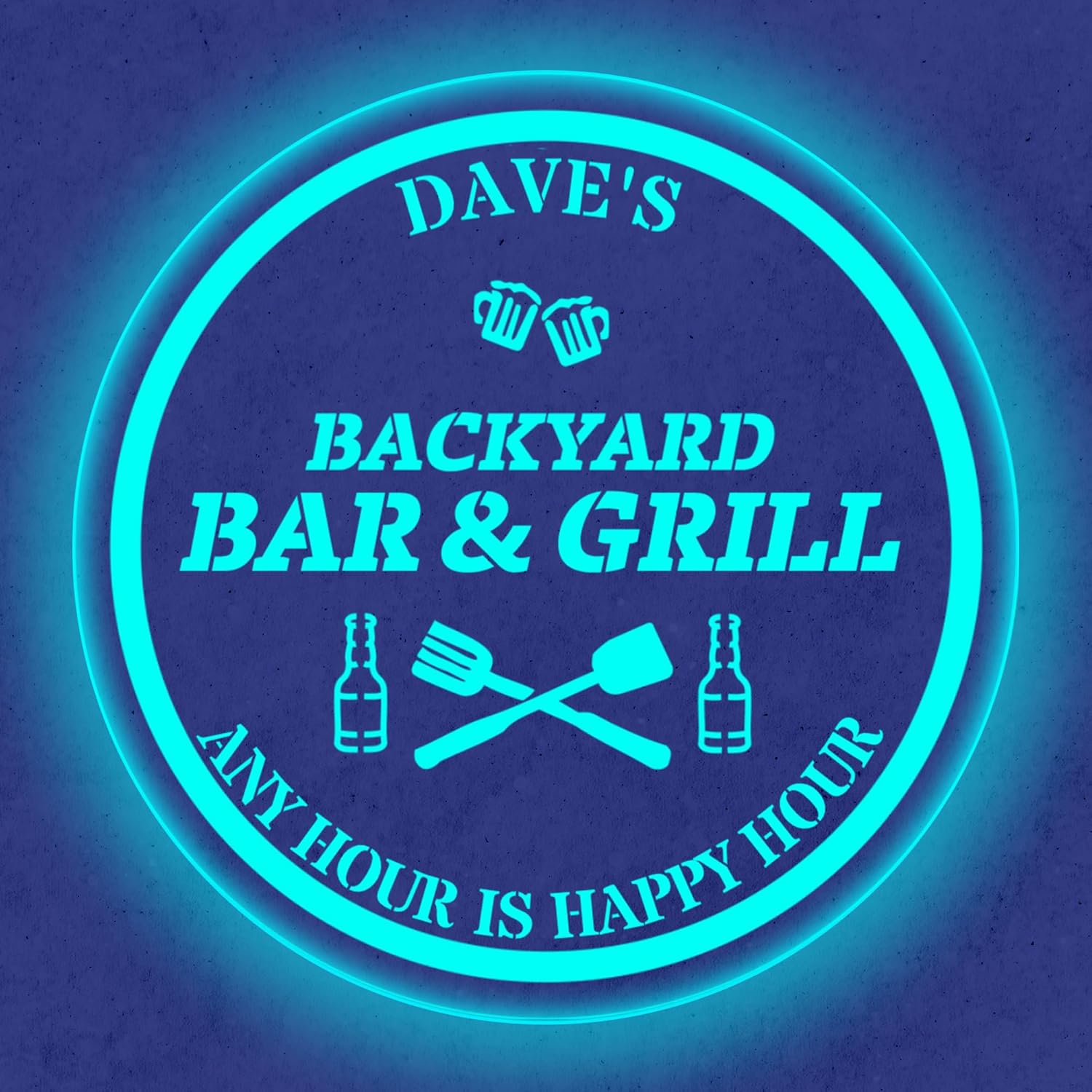 - Custom Acrylic Sign with LED Lights: Personalize this clear laser engraved acrylic sign with a name or phrase and enjoy vibrant color changing LEDs that match your backyard bar, patio, or man cave vibe; comes with a remote for easy control of colors and lighting modes