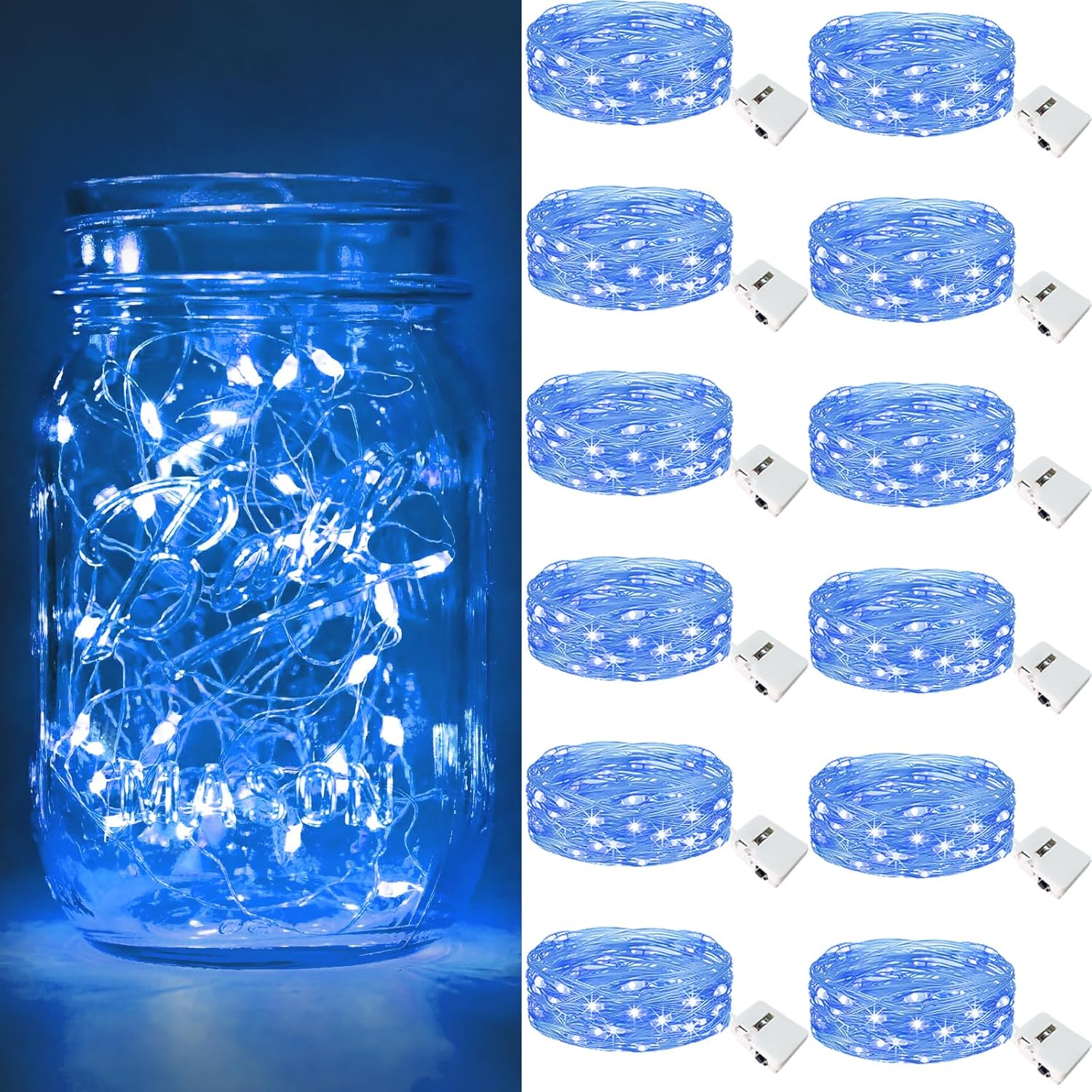 btfarm 12 Pack Fairy Lights Battery Operated [3 Modes], 7ft 20 Led Twinkle Lights String Lights Waterproof Bulk Small Mini Silver Wire for Mason Jars Vases Wedding Table Centerpiece, Blue