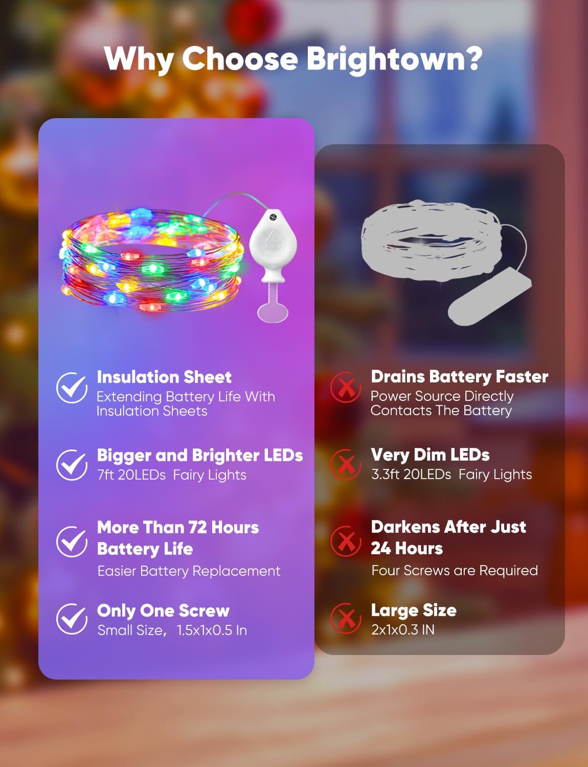 - [Long-Lasting Battery Life]Crafted with high-quality strong silver wire and energy-efficient LED bulbs lasting up to 2 years. The included CR2032 watch batteries allow the lights to stay lit for more than 72 hours. The battery box is fixed with screws and cannot be easily opened, effectively prevent children from ingesting by mistake. It is also equipped with a screwdriver, you can use screwdriver to replace the battery more conveniently