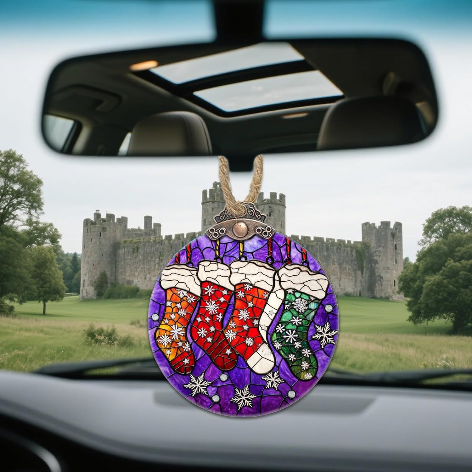 Stained Glass Christmas Decorations, Colorful Socks Suncatcher for Window Christmas Tree Hanging Ornaments Silver Snowflake Sun Catcher Xmas Decor Gifts for Women Men Mom Nana Friend