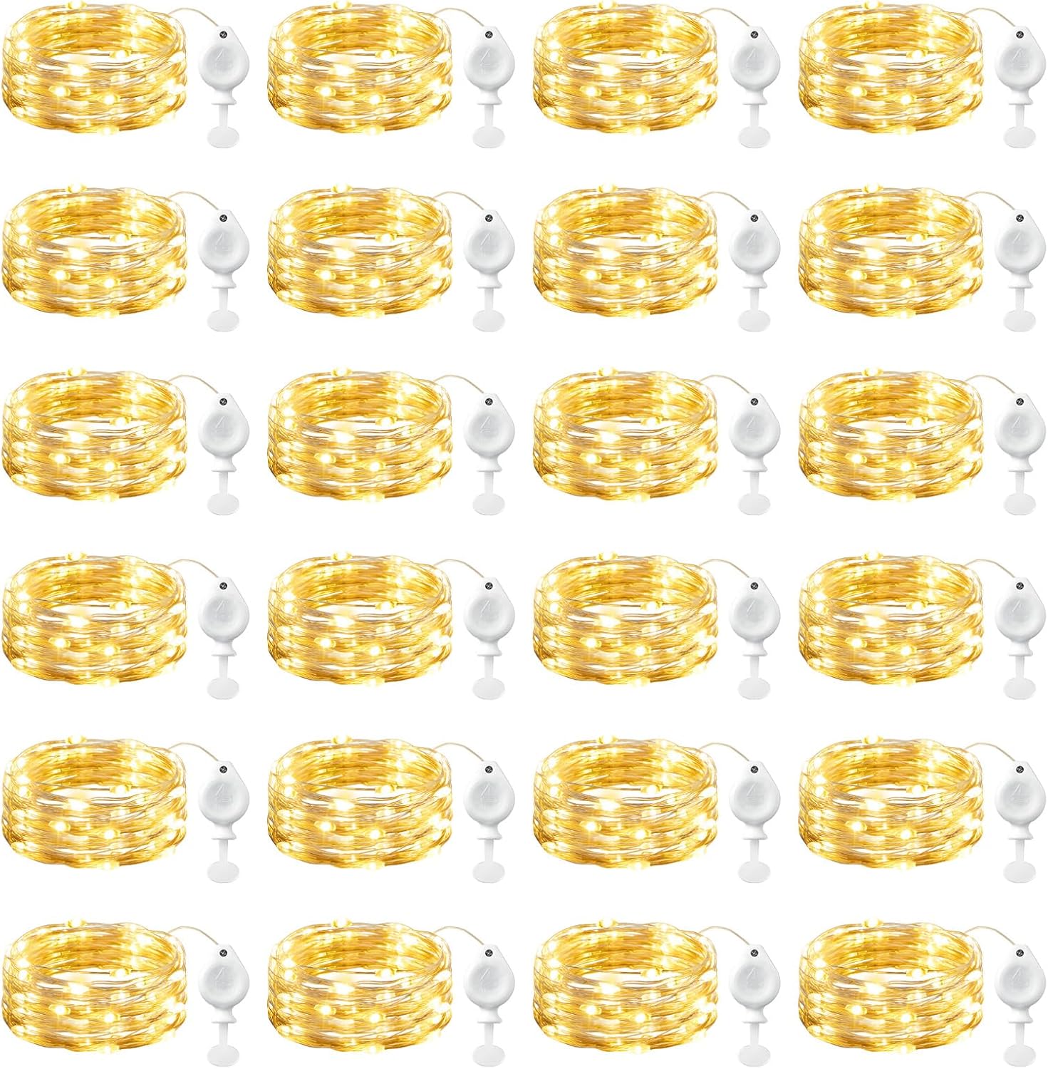 Brightown 24 Pack LED Fairy Lights Battery Operated String Lights, 7ft 20LED Waterproof Silver Wire String Lights, Firefly Starry Moon Lights for Mason Jars DIY Christmas Wedding Party Bedroom