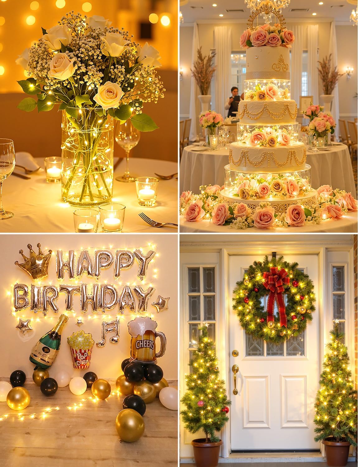 - [Romantic Your Moments and Brighten Your Life] Battery Operated Fairy lights is perfect for decorations and creating romantic atmosphere on Valentine's Day, Christmas decorations, Halloween, and any other important festivals.Perfect fairy lights for weddings, parties, mason jars, crafts, arts, trees, branches, plants, flowers, kids’ rooms, tents, bedrooms, living rooms, nurseries, cubicles, loft beds, windows, ceilings, walls, shelves, patios, porches, balconies, corridors, fences, staircases, awnings, bulletin boards, holiday, Christmas, winter wonderland decorations