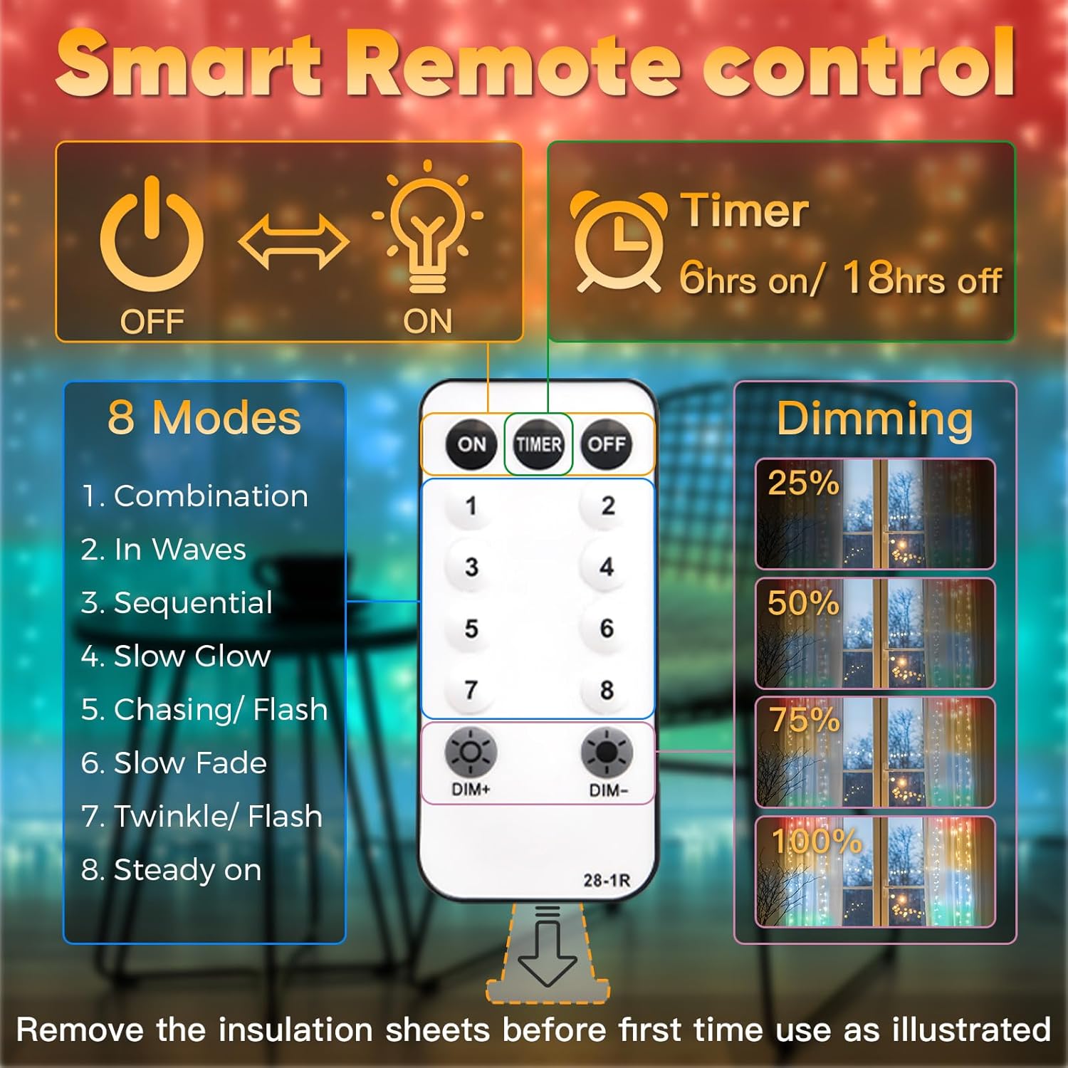 - 【Create Magic with 8 Lighting Modes + Auto Timer】 Set the mood for every occasion! Choose from steady on or 7 flashing modes: waves, twinkle, slow fade, and more. Perfect for romantic dinners, vibrant parties, or calming bedtime vibes! The 6-hour auto timer saves energy by turning lights off after midnight—ideal for worry-free holiday displays or daily ambiance.