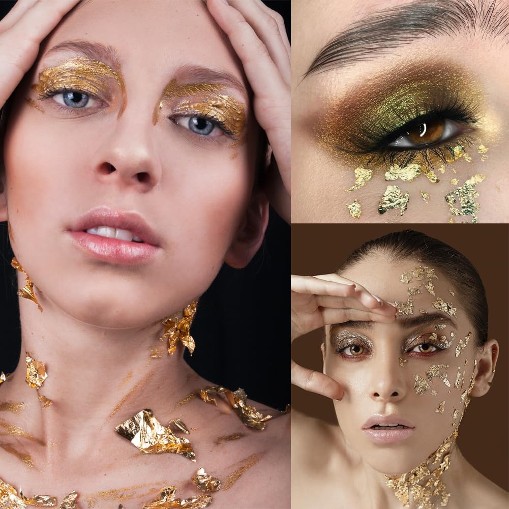 - Beauty and Makeup: The resin art gold flakes can be ground into powder and mixed with skin care products and serums. Apply to your face after cleaning to anti wrinkle. Our gold leaf resin decorations can also be used for makeup, engaging attention at parties, and performing