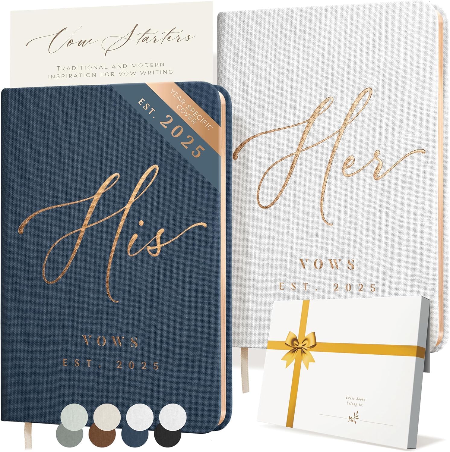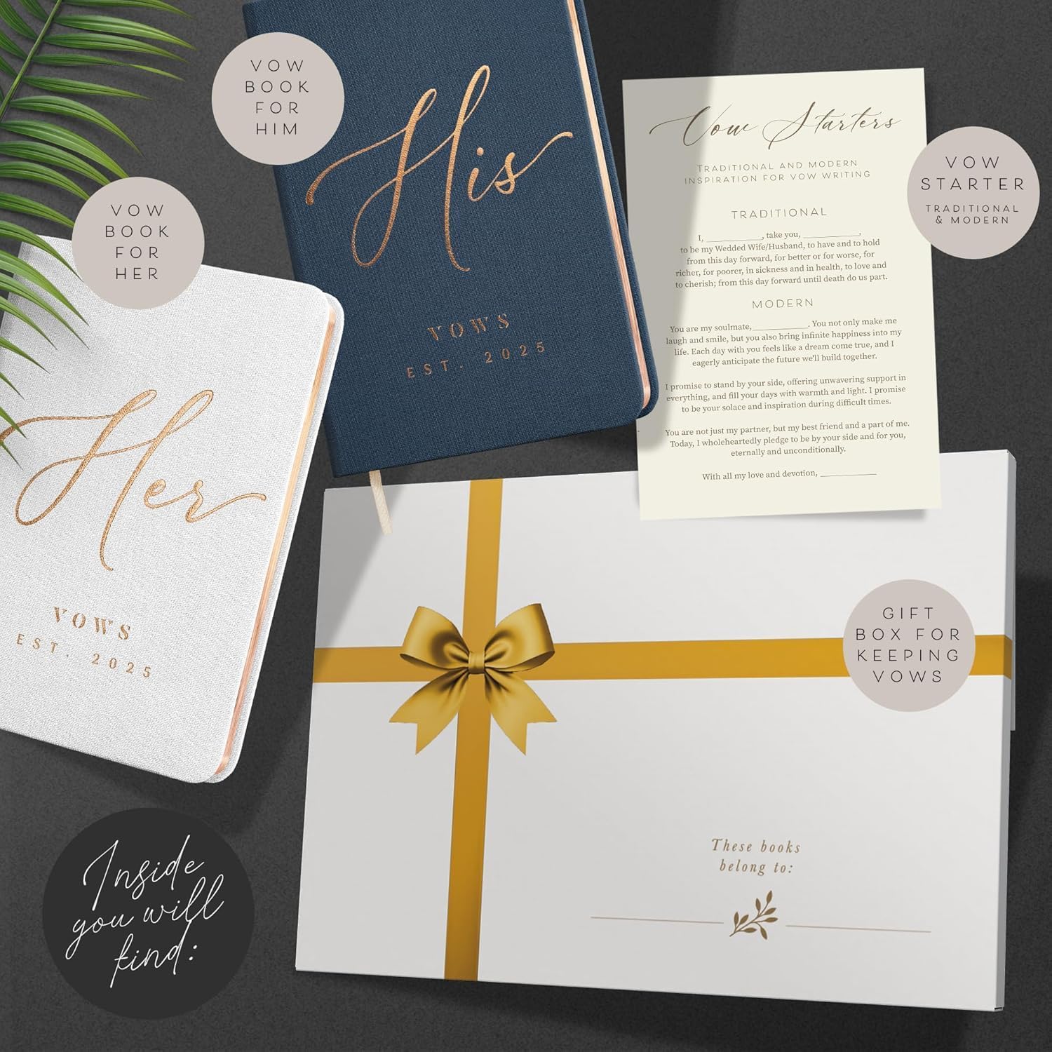 - LUXURIOUS WEDDING ESSENTIALS GOLD ACCENTS: All his her vows books feature gold-foiled “His” and “Her” engravings on the covers, and elegant gold-gilded page edges for a refined and sophisticated finish.