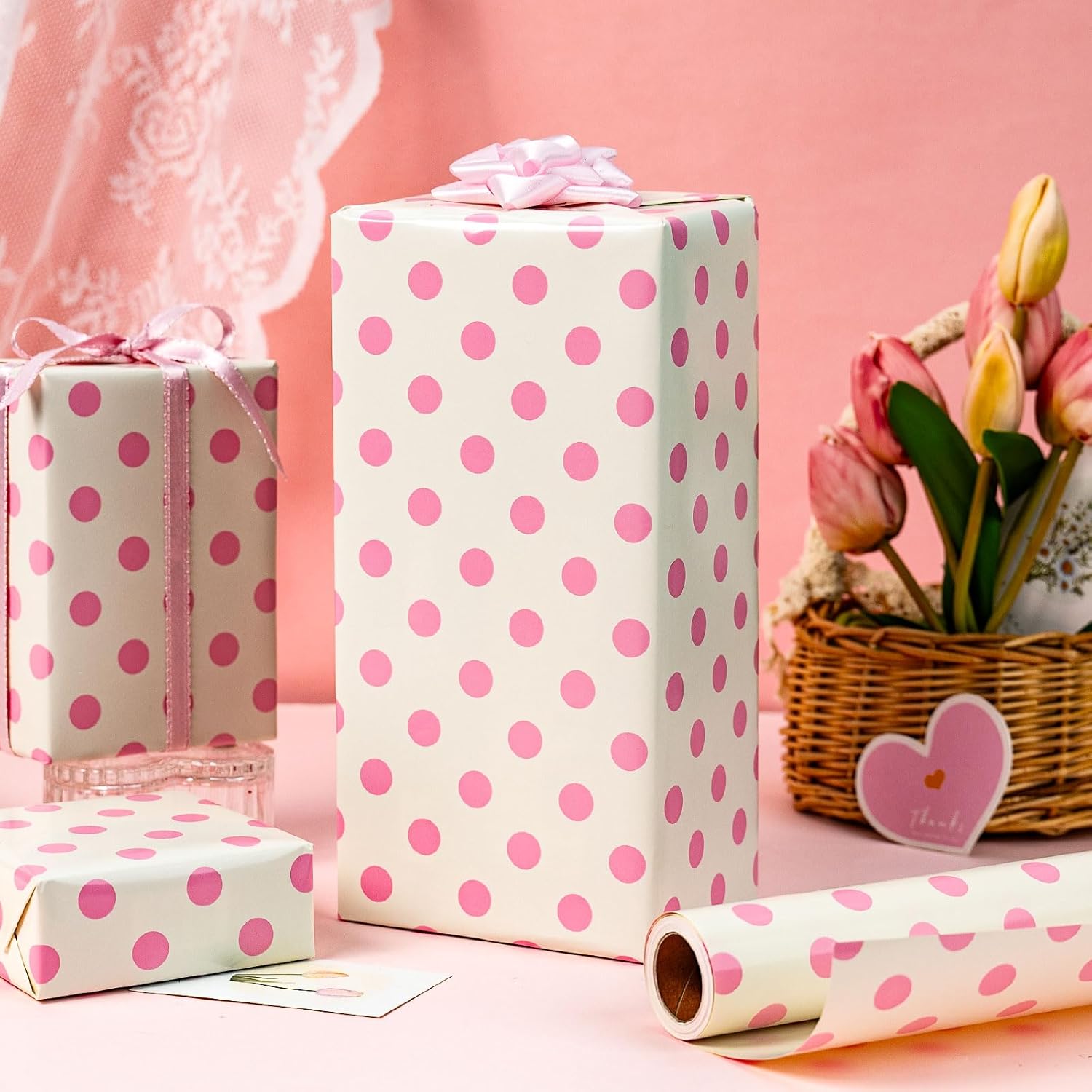 - Double-Sided Wrapping Paper: One side has pink and beige polka dots, and the other is solid pink, making your gift wrap both fun and elegant