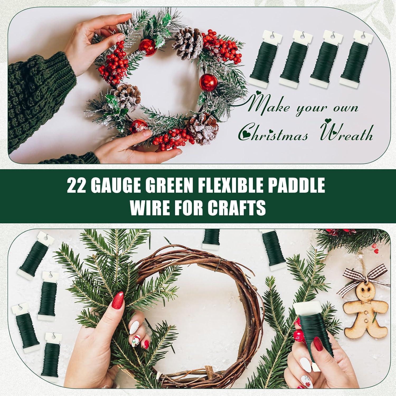 Ferraycle 72 Pack Green Floral Wire 38 Yards 22 Gauge Flexible Paddle Florist Christmas Green Wire for Crafts Christmas Wreaths Tree Garland and Floral Flower Arrangements