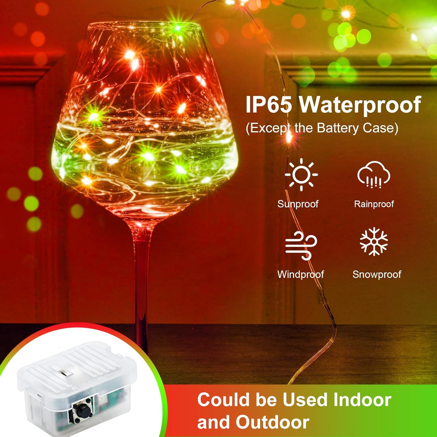 - IP65 WATERPROOF AND INDIVIDUALLY WRAP: The battery fairy lights are waterproof can be used for Indoor/Outdoor. (the battery pack is not waterproof) safe to the touch. Made of soft bendable wire so you can easily bend into any shape or wrapped it on anything such as Christmas trees, wine bottle, pumpkins, guirlande lumineuse interieure, potted landscape etc.Each light is individually packaged, say goodbye to cable tangles and bring more happiness and satisfaction to your family and friends