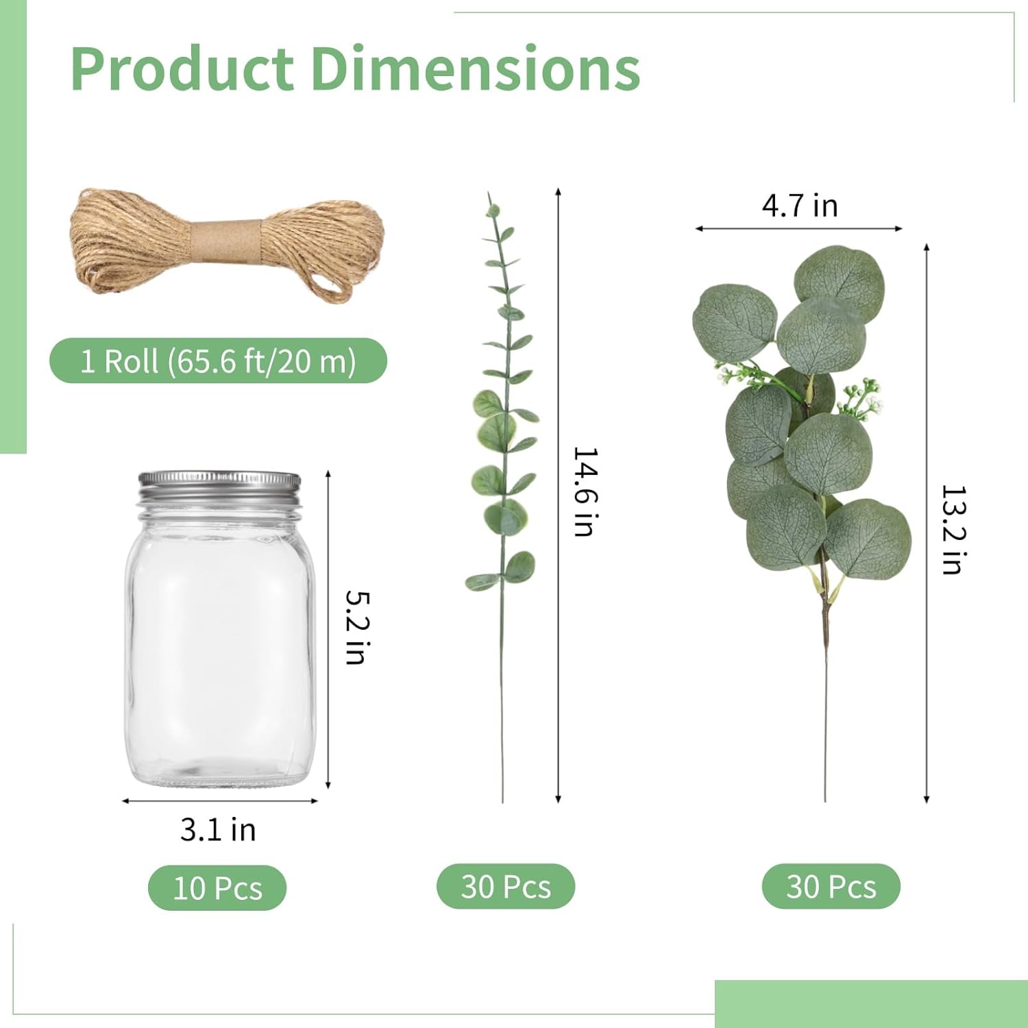 - Instant Centerpieces for Tables: 10 clear glass mason jars 17 oz with rope plus artificial eucalyptus and gypsophila ready for wedding table centerpieces reception table decorations and everyday home decor